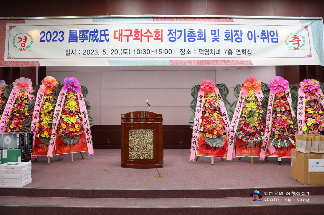 2023년도 창녕성씨 대구화수회 정기총회 및 회장 이.취임식의 행사장이다.