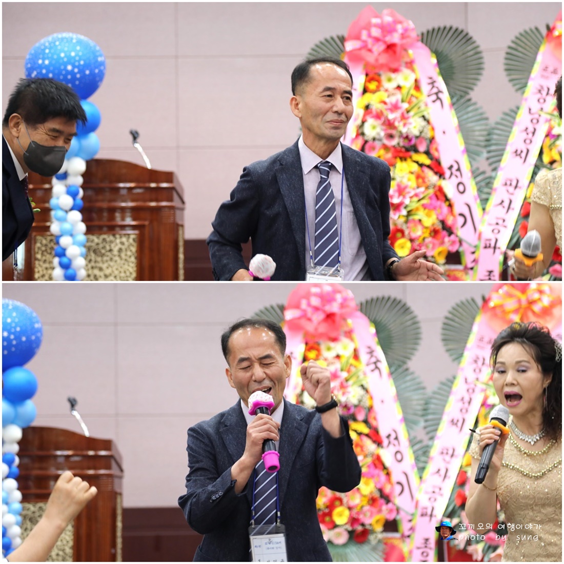성영태 대종회 상임고문님이 인사를 하시고 열창을 하시는 모습이다.