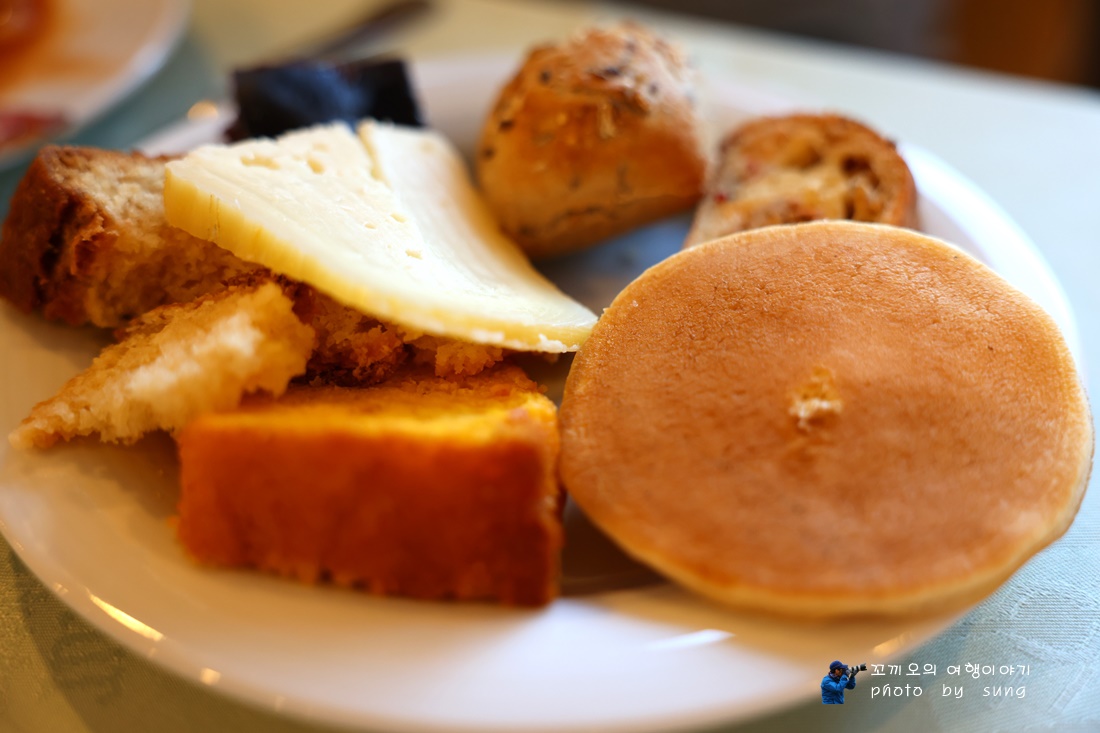 친구들과 호텔에서 조식을 맛나게 먹는 모습이다.