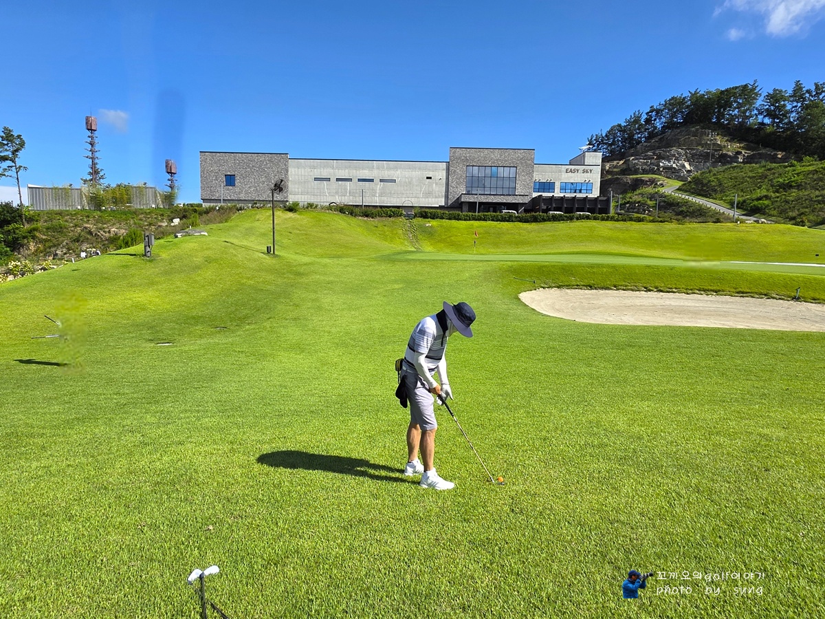 이지코스 마지막 홀인 9번 홀에서 담아본 클럽하우스의 전경이다.