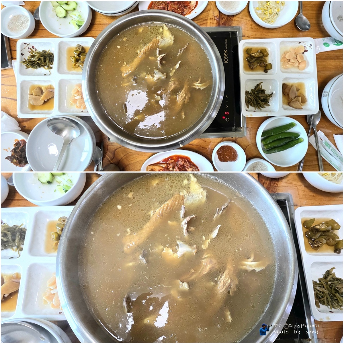 골프장에서 약 10분 거리인 군위읍내 연화식당에서 옺닭 백숙으로 점심을 맛나게 먹었다.