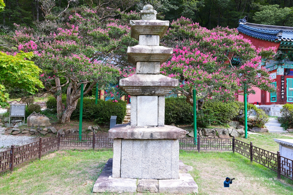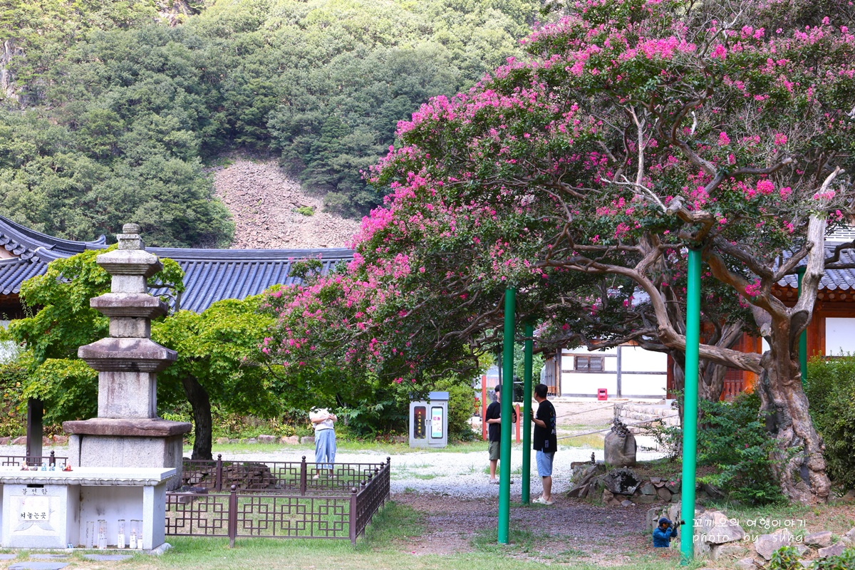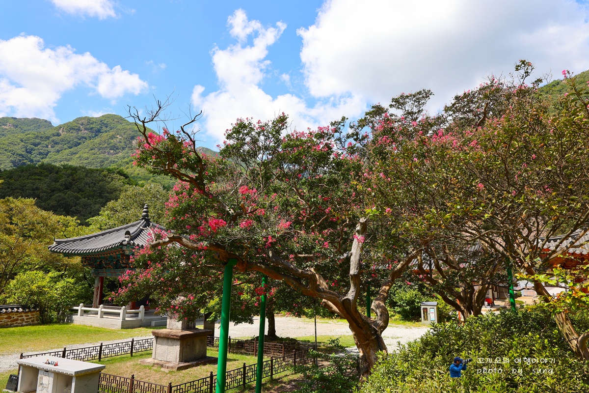 배롱나무 꽃과 어우러진 사찰이 아름답기도 하다.