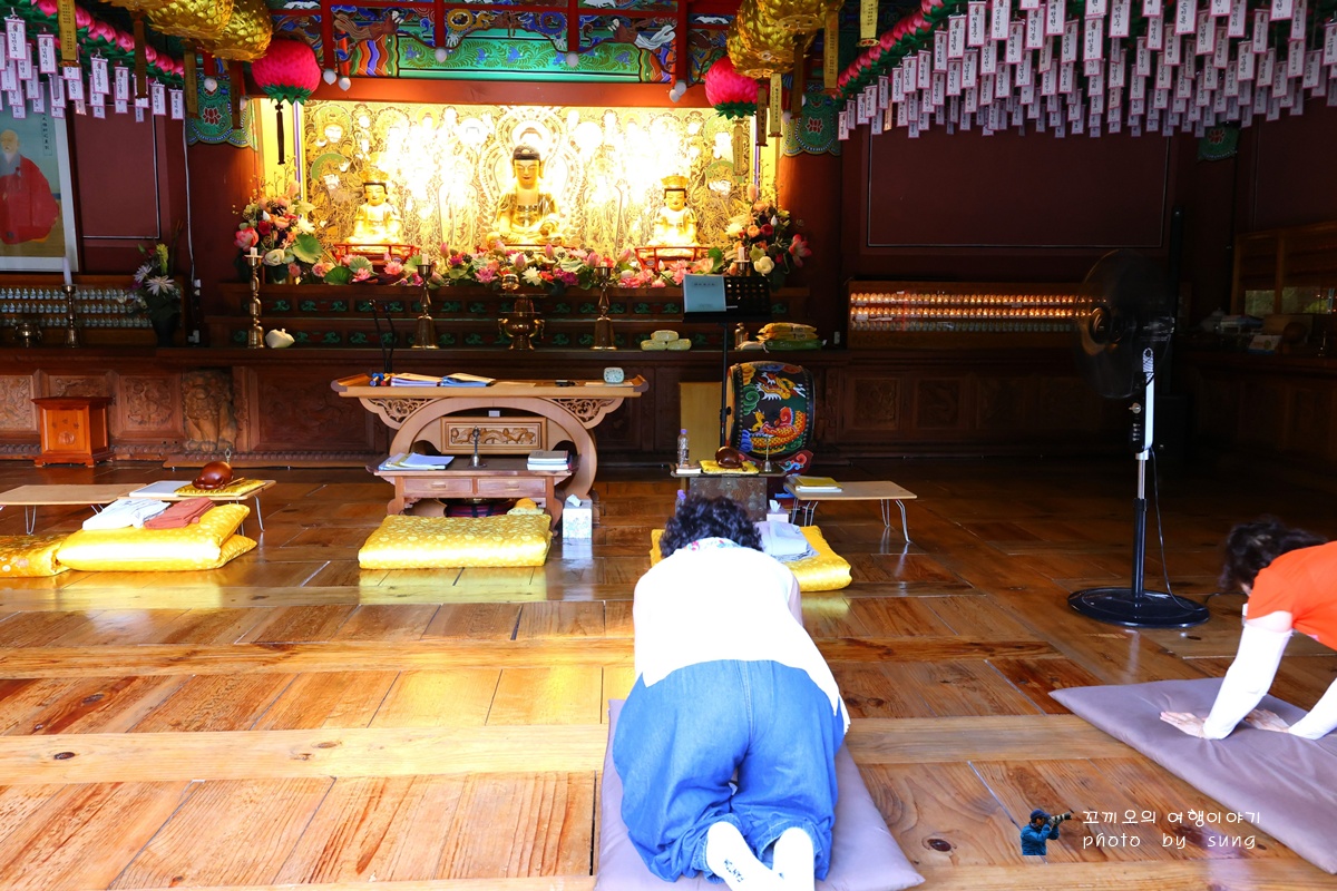불자로서 대웅전 부처님 앞에서 열심히 기도를 올리는 모습이다.