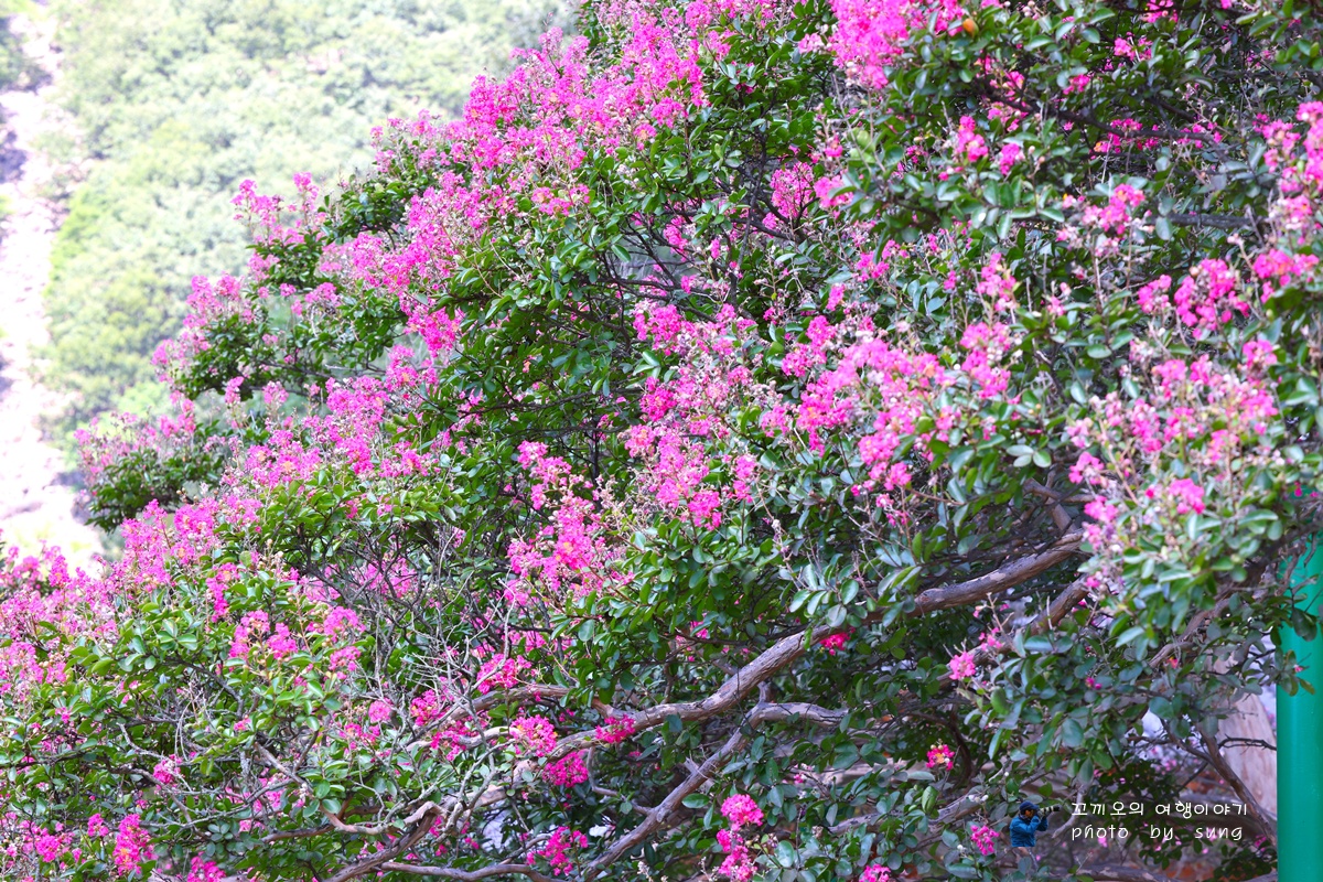수령이 500년이 넘는 배롱나무에 꽃이 곱게 피어나 아름다운 풍경이다.