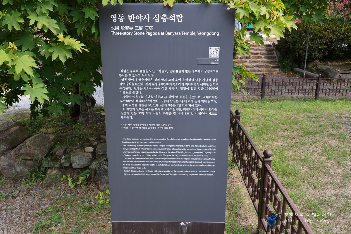 보물로 지정된 영동 반야사 삼층 석탑은 반야사 안에 건립되어 있는데