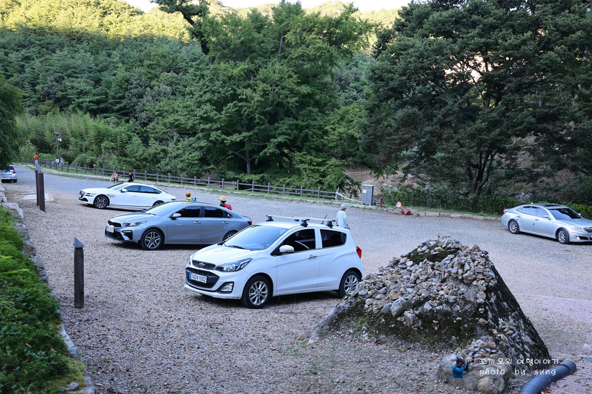 천태산 주차장에서 주차를 하고 영국사까지는 약 2km를 걸어야 한다.