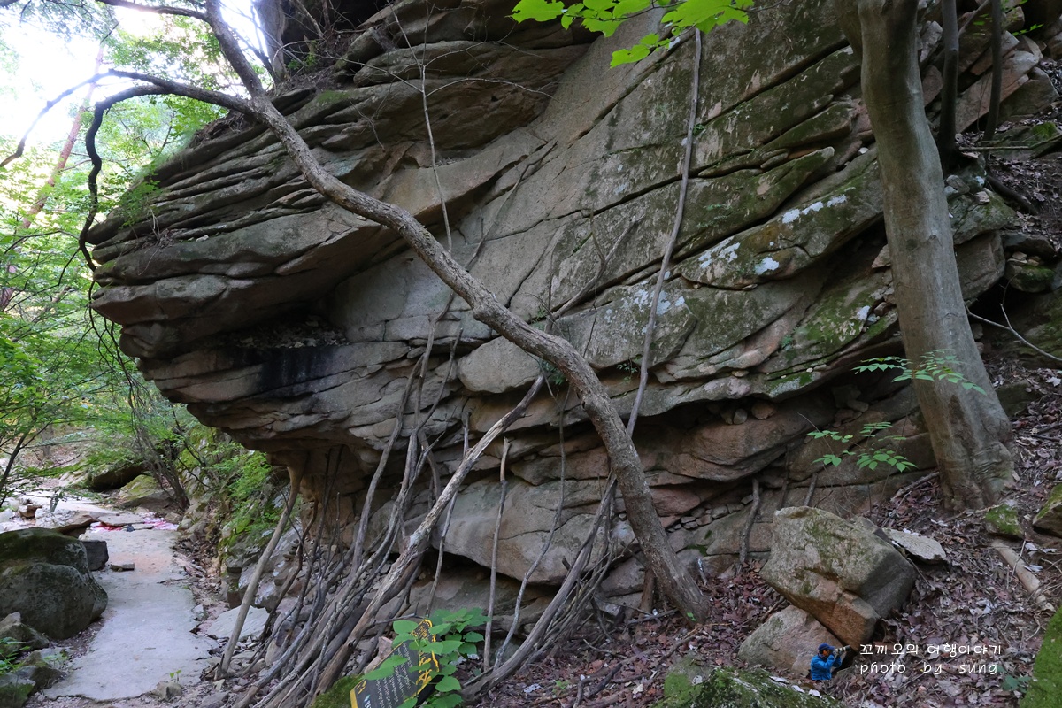 바위가 층층이 쌍여 있는 모습이 할머니의 쭈굴쭈굴한 주름을 연상시키는