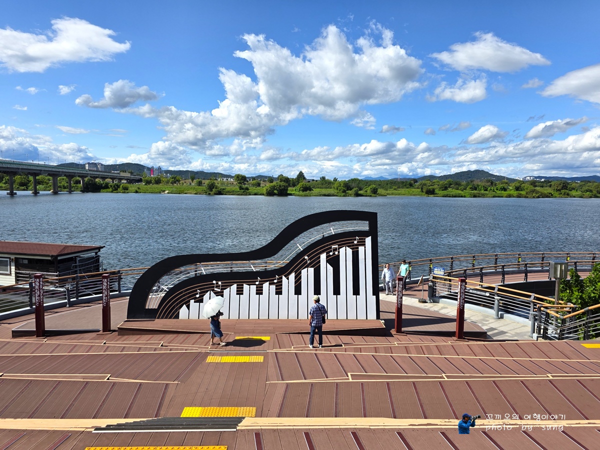 피아노의 조형물이 낙동강을 바라보면서 우뚝하게 서 있다.