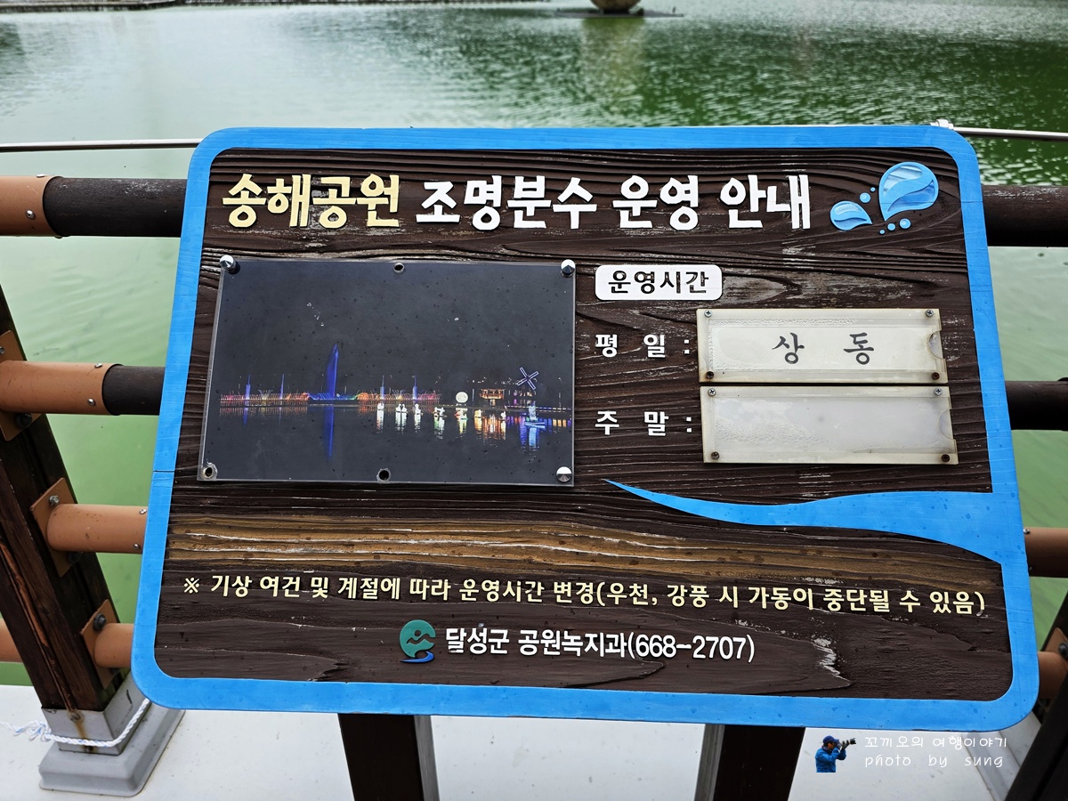 송해공원의 조명 분수의 운영 안내 글이다.