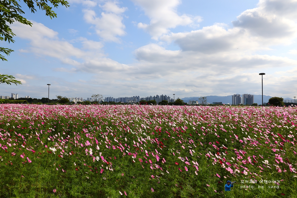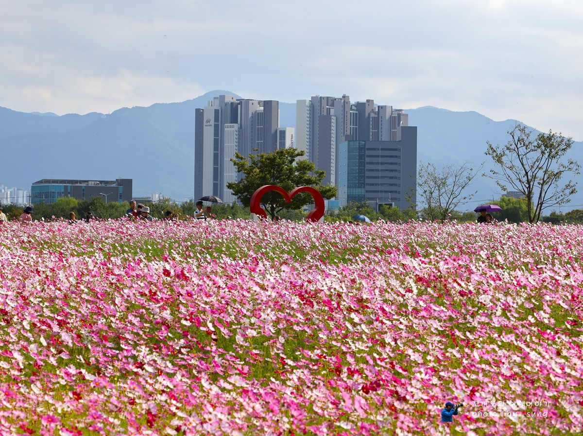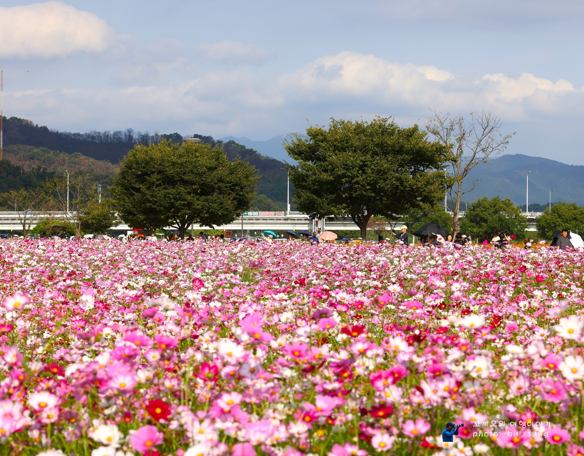 대구시의 대표 관광명소로 급부상하고 있는 북구 노원동 금호강 하중도에는 가을의 전령사인 코스모스가 만개하여 절정을 이루면서 대구 시민들의 발걸음으로 북새통을 이루고 있으며 또한 만개한 코스모스 꽃길을 거닐면서 가을의 정취와 낭만을 즐기기에도 좋은 곳이다. 그리고 금호강 하중도에는 대규모 코스모스 꽃 단지가 축구장 크기의 14배에 달하는 면적에 일반 재래종 코스모스와 황화 코스모스단지를 조성하여 대구 시민들에게 선보이고 있다. 그리고 다가오는 주말(11일-12일)에는 금호강 하중도 코스모스 꽃단지에 연인과 가족과 나들이를 가셔서 금호강의 푸른 물결을 배경으로 코스모스와 함께 아름다운 수변 정취를 느끼면서 산책하면 힐링이 될 것이다.