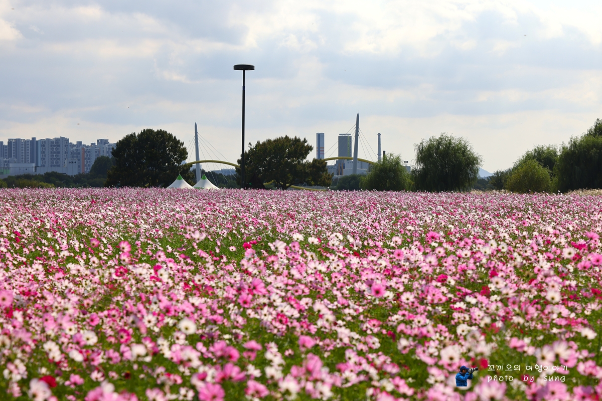 코스모스와 어우러진 풍경이 마치 한 폭의 그림 같다. ㅎㅎ