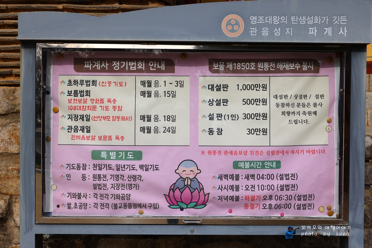 파계사 보물 1850호 원통전은 해체 보수 공사로 출입할 수가 없다.