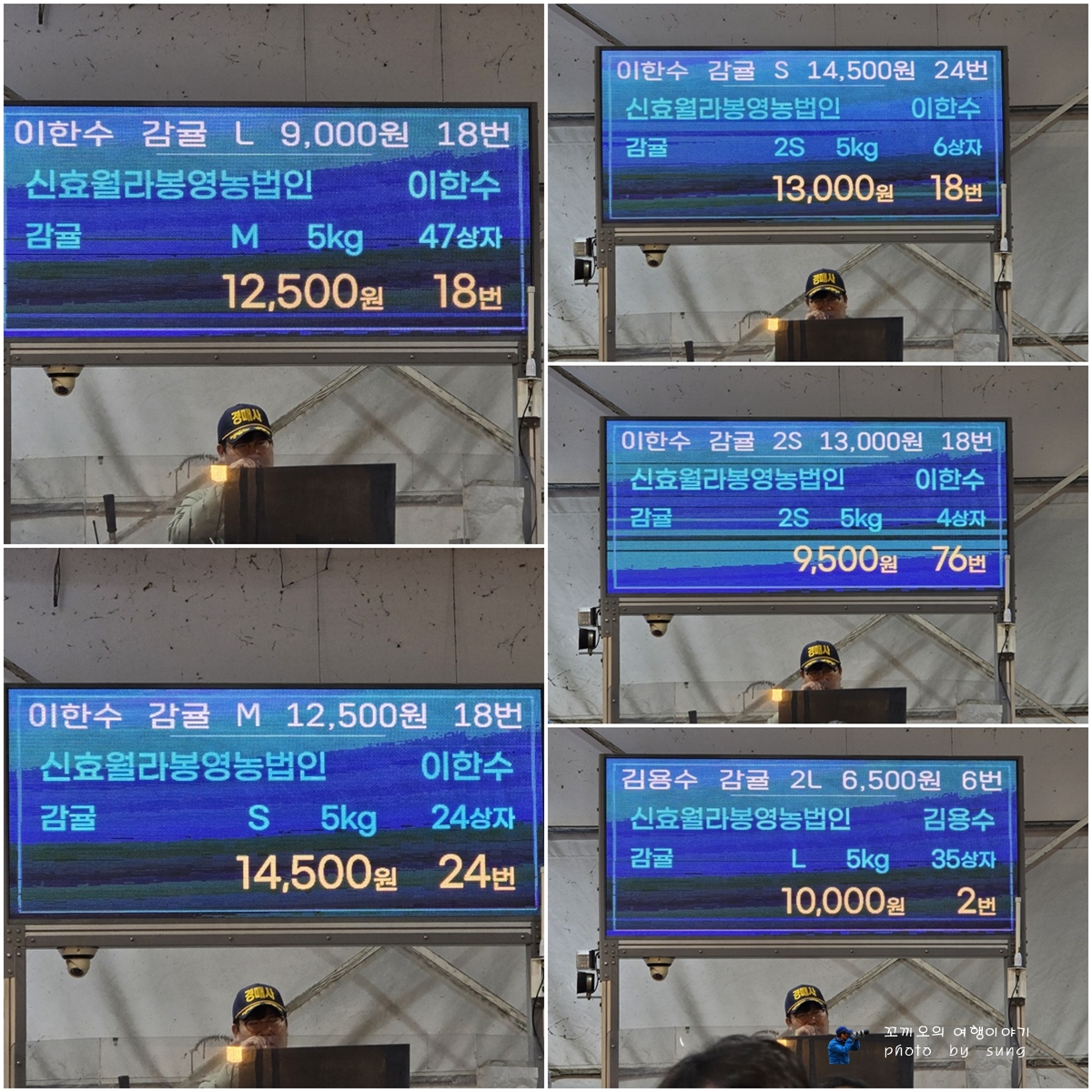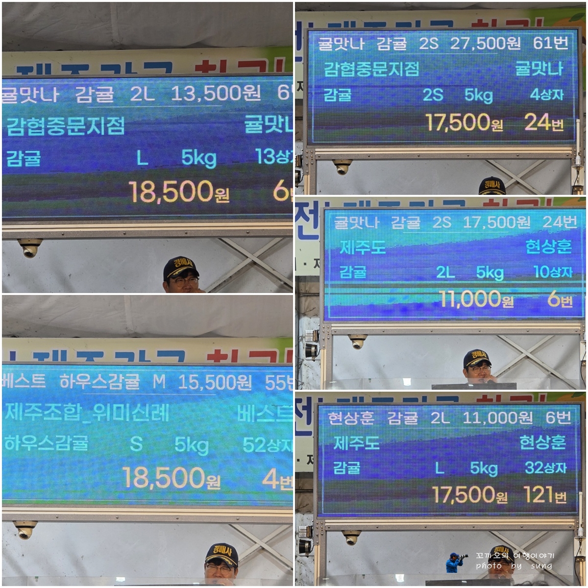 상기의 전광판을 보면 5kg 감귤 1상자의 경매 가격이 12,500원에 낙찰되는 모습이다.ㅎㅎ
