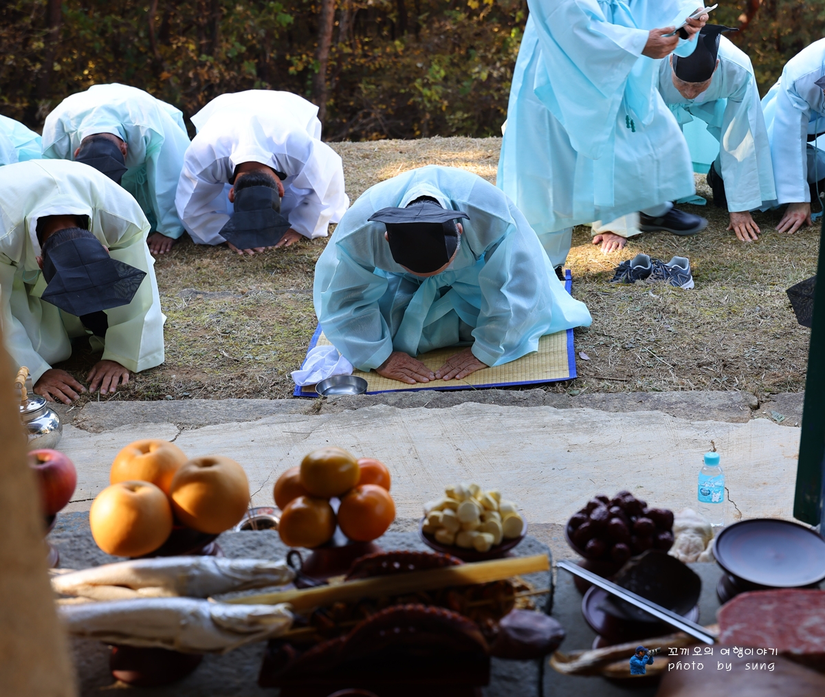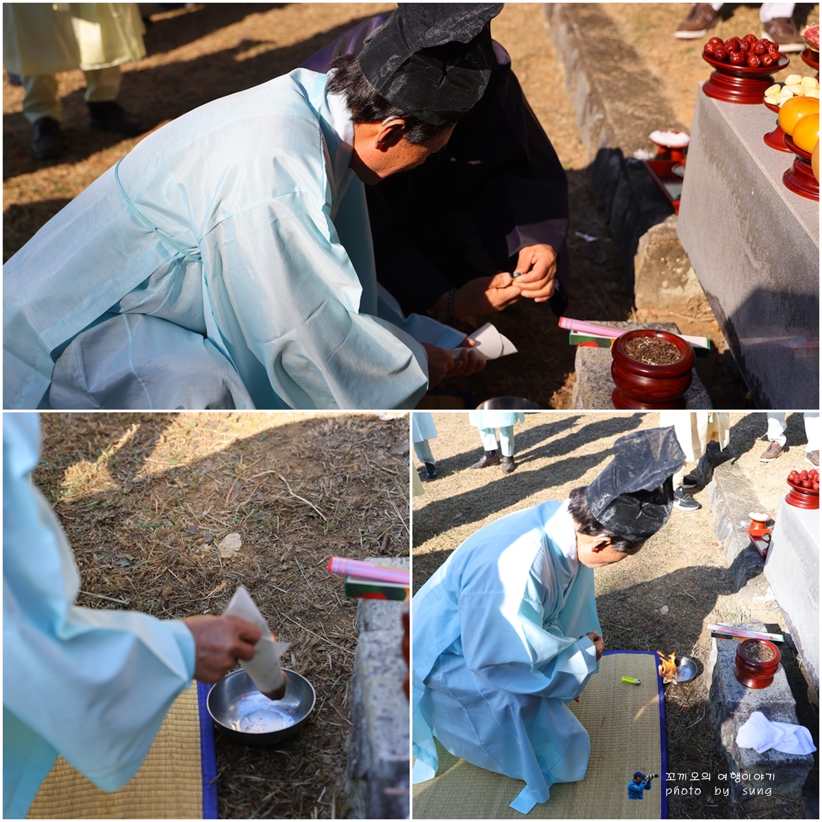 시향 봉행 행사를 하면서 정절공 후손 분들은 엄숙하게 경건한 마음으로 제례를 올리는 모습이다.