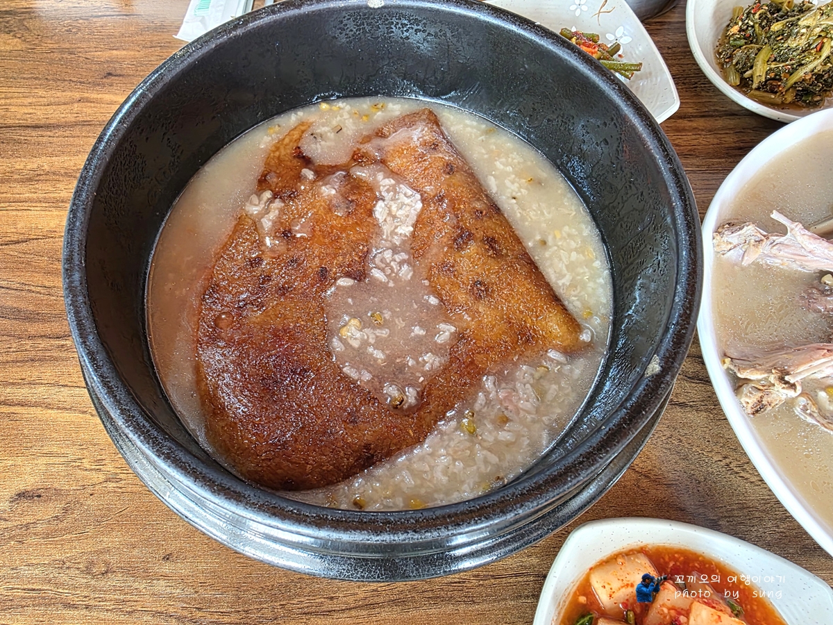 누룽지가 듬뿍 들어간 누룽지 죽은 구수하고 맛이 일품이다.