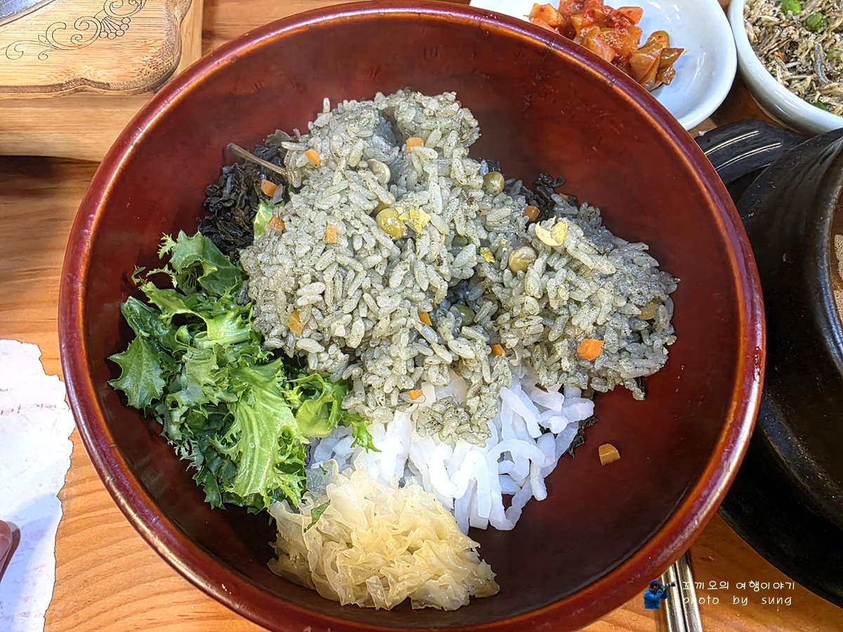 친구들과 맛나는 산채비빔밥을 즐겁게 먹는 모습이다. ㅎ