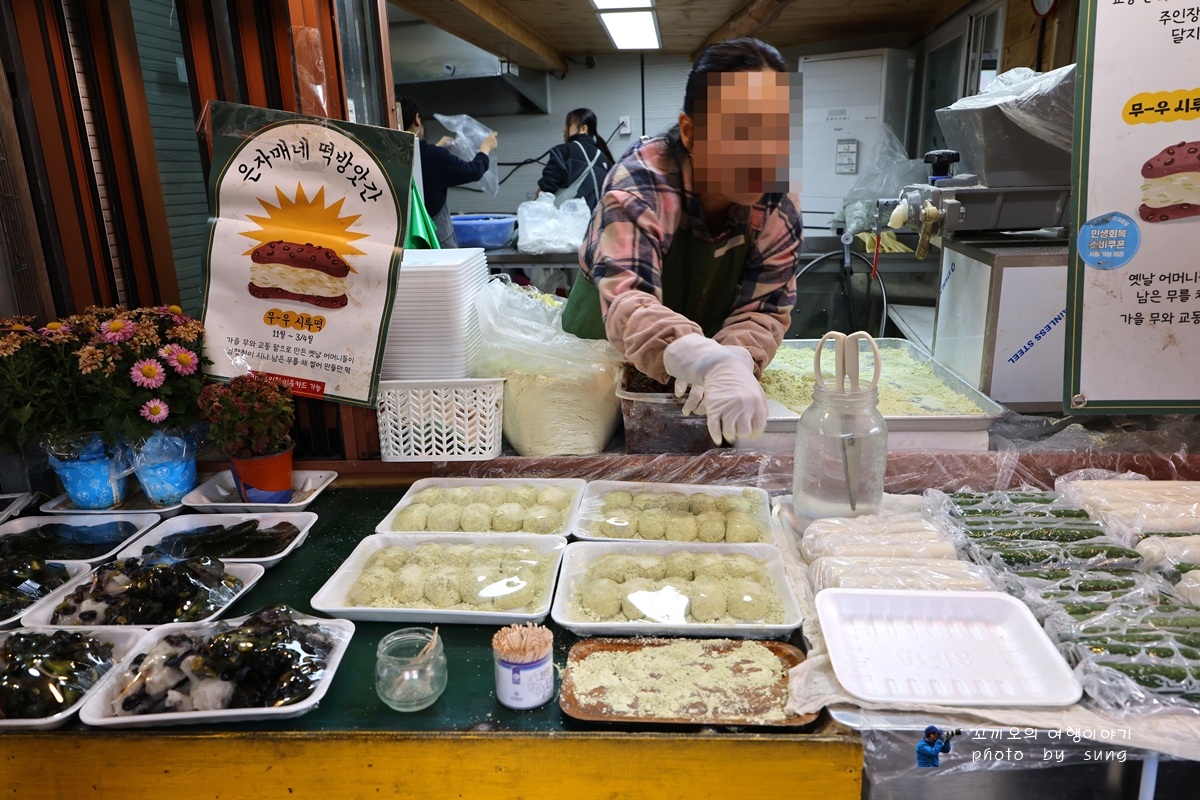 친구들은 시장의 시식코너에서 시식을 하면서 맛보는 모습이 어릴 적에 시골 오일장이 생각이 난다. ㅎㅎ