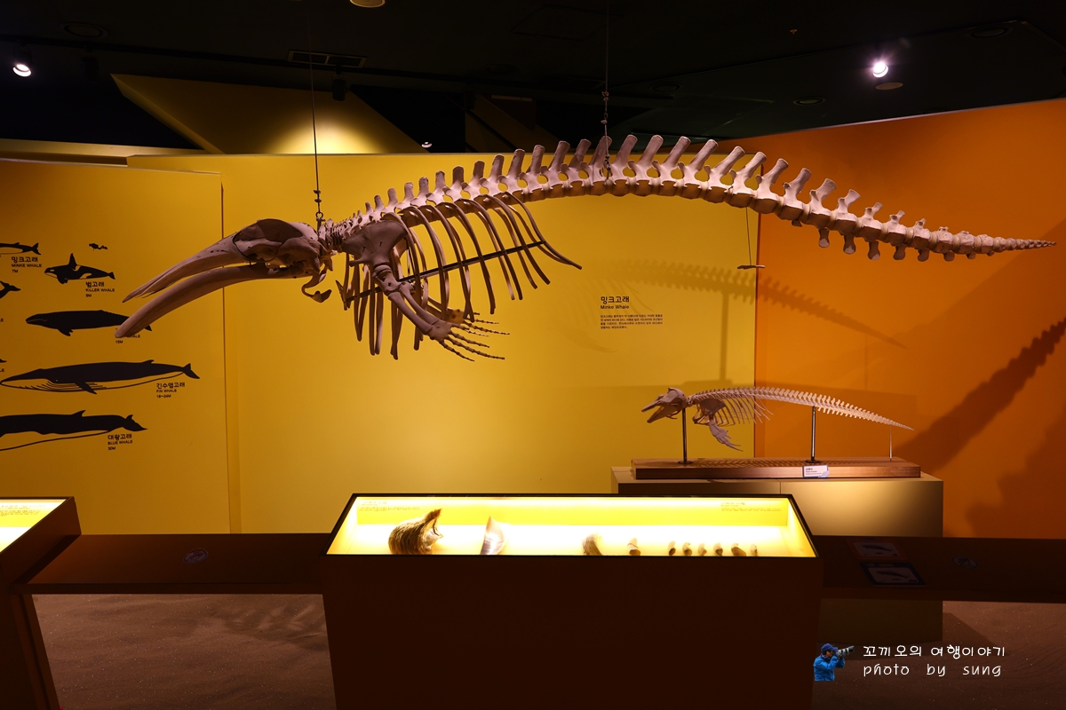 길이 14m의 향유고래의 골격 표본이 전시되어 직접 관람할 수 있다.
