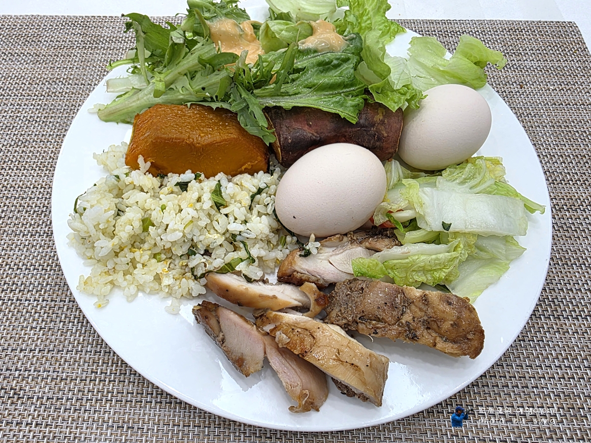 옥수수와 삶은 계란도 푸짐하다.