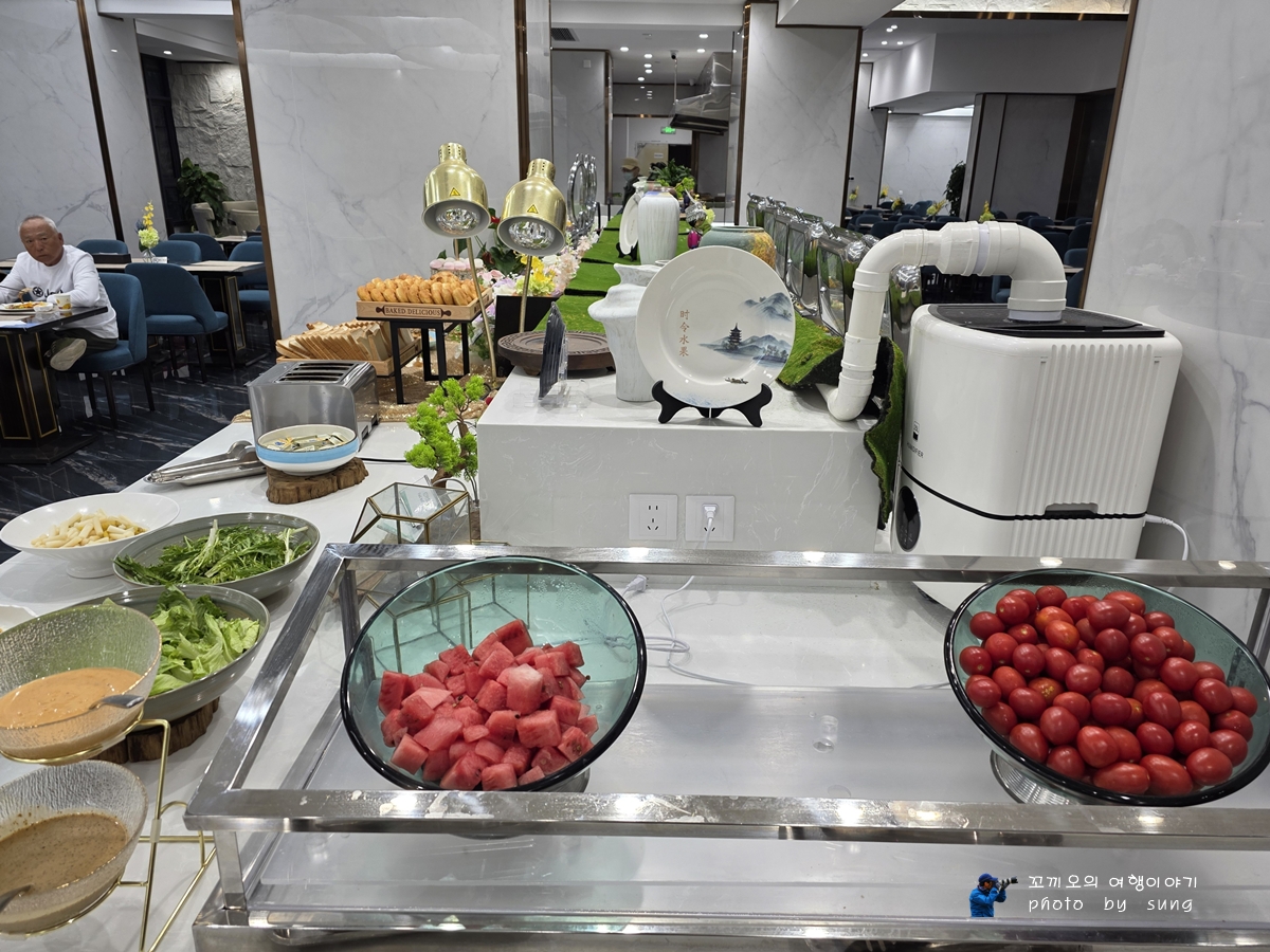 대한민국 임시정부유적지와 신천지를 둘러보고 마지막으로 상하이에서 야경이 아름다운 와이탄 전망대에서 황푸강을 바라보면서 주변의 고층 건물과 어우러진 환상적인 풍경을 감상하면서 귀주성으로 가는 비행기 시간이 없어서 그렇게 야경이 아름답다고 하는 와이탄의 야경은 아쉽게도 구경 못하고 상하이 공항에서 구이저우성 귀양시 공항으로 9시 출발해서 약 3시간을 비행하여 밤 12시에 귀양시 공항에서 현지 가이드와 미팅하여 관광버스로 귀양시 시내와 위치한 5성급 호텔의 하이푸호텔에서 첫 날 밤을 숙박하면서 기상 후 호텔 뷔폐식당에서 맛 나는 조식을 먹었다.
