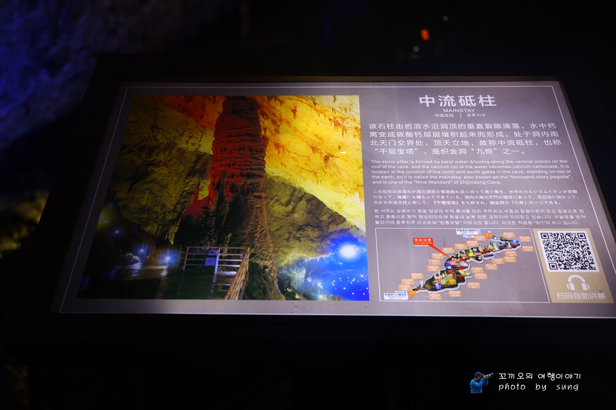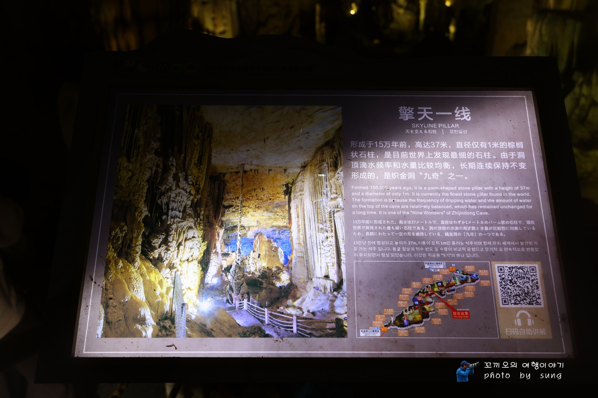 동굴 입구로 들어가서 이렇게 수많은 종류석을 구경하다 보면 2시간이 훌쩍 지나가면서 이렇게 많은 사진을 담느라고 분주하다. 그리고 이곳 직금동 동굴은 중국에서 가장 아름다운 관광동굴이며 인간 세상에서 극락이 있음을 알게 된다고 할 정도로 환상적인 모습을 자랑하는 동굴인 직금동에 도착하여 동굴 내부를 돌아보았지만 보는 이로 하여금 탄성이 저절로 나온다. 그리고 78m에 달하는 거대한 동굴 내부의 높이와 3,000여 ㎡의 규모는 보는 사람으로 하여금 감탄을 자아내는데 특히 직금동은 세계 종유 동굴의 거의 모든 모습을 갖추고 있어, '종유동굴의 왕', '천하제일동'이라고도 불리는 동굴로서 관광들에게 인기가 많은 동굴로서 유명하다.