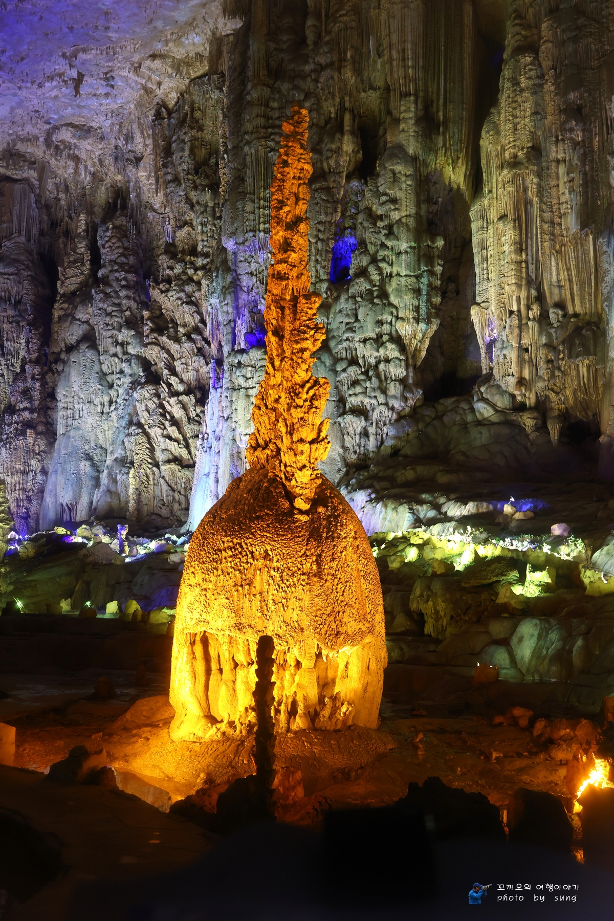 구룽 정후이(경쟁하는 밝기)야자수 모양의 종유석이 방추형 기둥과 공생하며 발달한다.