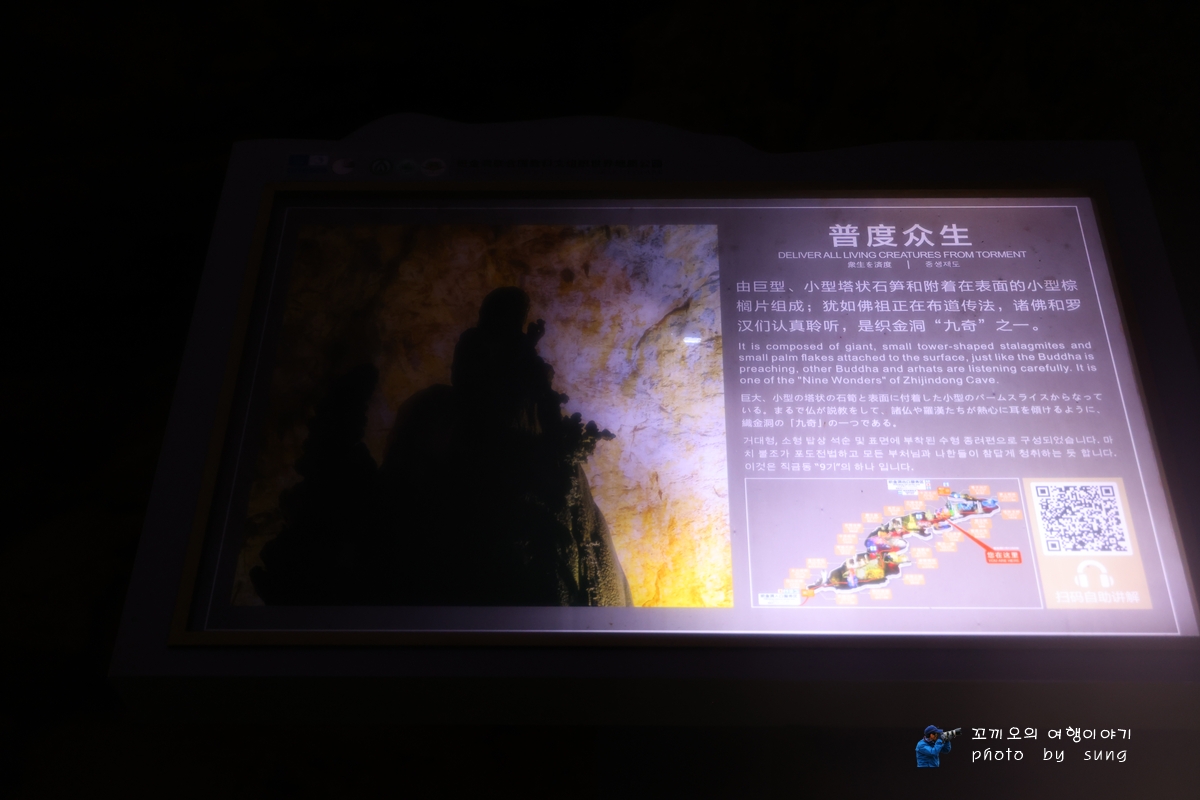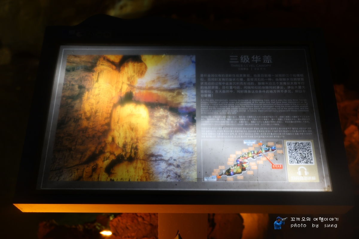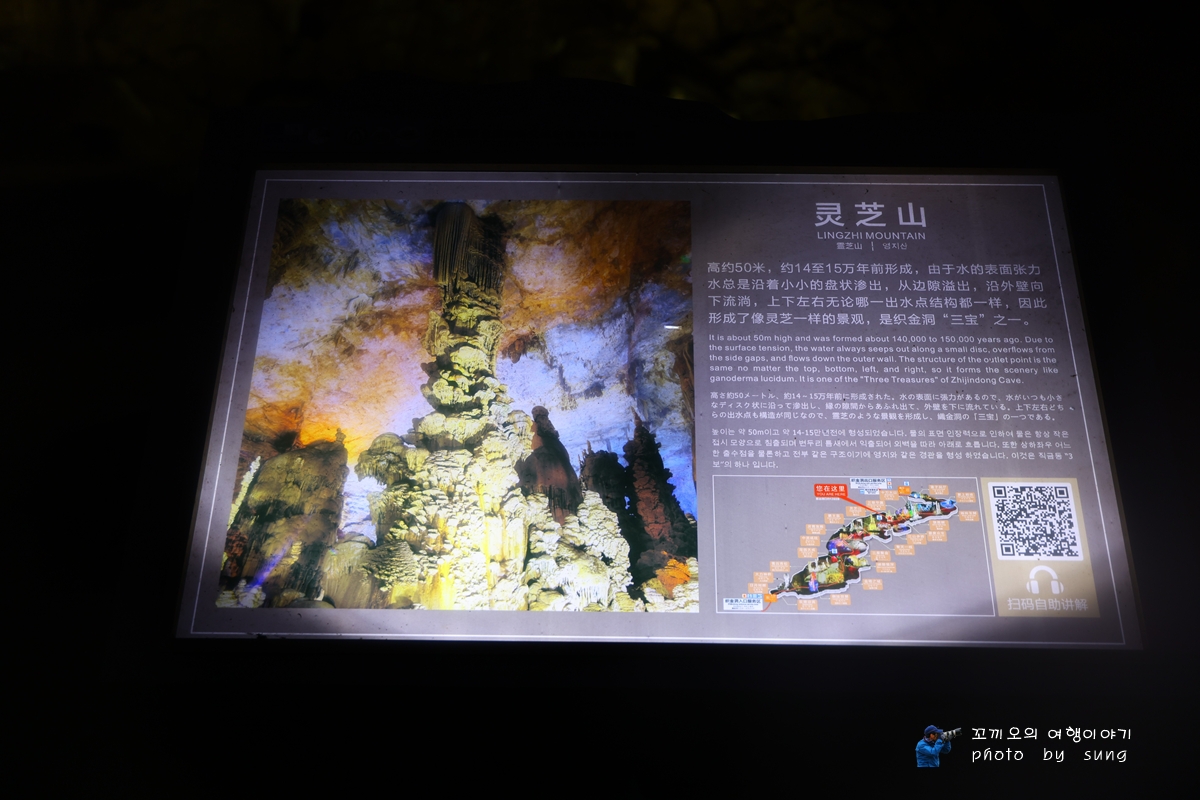 그래서 2시간 동안에 관광을 하면서도 이곳 동굴의 종유석은 전부 볼 때마다 다른 모습으로 선보이는 특유의 신비스러운 종유석은 보는 이로 하여금 탄성을 자아내게 한다. 그래서 그런지 다양하고 수많은 종유석을 보면서 담은 사진의 량이 너무 많아서 이렇게 나누어서 올려보았다. 그리고 이곳 직금동 동굴은 중국에서 가장 아름다운 관광동굴이며 인간 세상에서 극락이 있음을 알게 된다고 할 정도로 환상적인 모습을 자랑하는 동굴인 직금동에 도착하여 동굴 내부를 돌아보았지만 보는 이로 하여금 탄성이 저절로 나온다. 그리고 78m에 달하는 거대한 동굴 내부의 높이와 3,000여 ㎡의 규모는 보는 사람으로 하여금 감탄을 자아내는데 특히 직금동은 세계 종유 동굴의 거의 모든 모습을 갖추고 있어, '종유동굴의 왕', '천하제일동'이라고도 불리는 동굴로서 관광들에게 인기가 많은 동굴로서 유명하다.