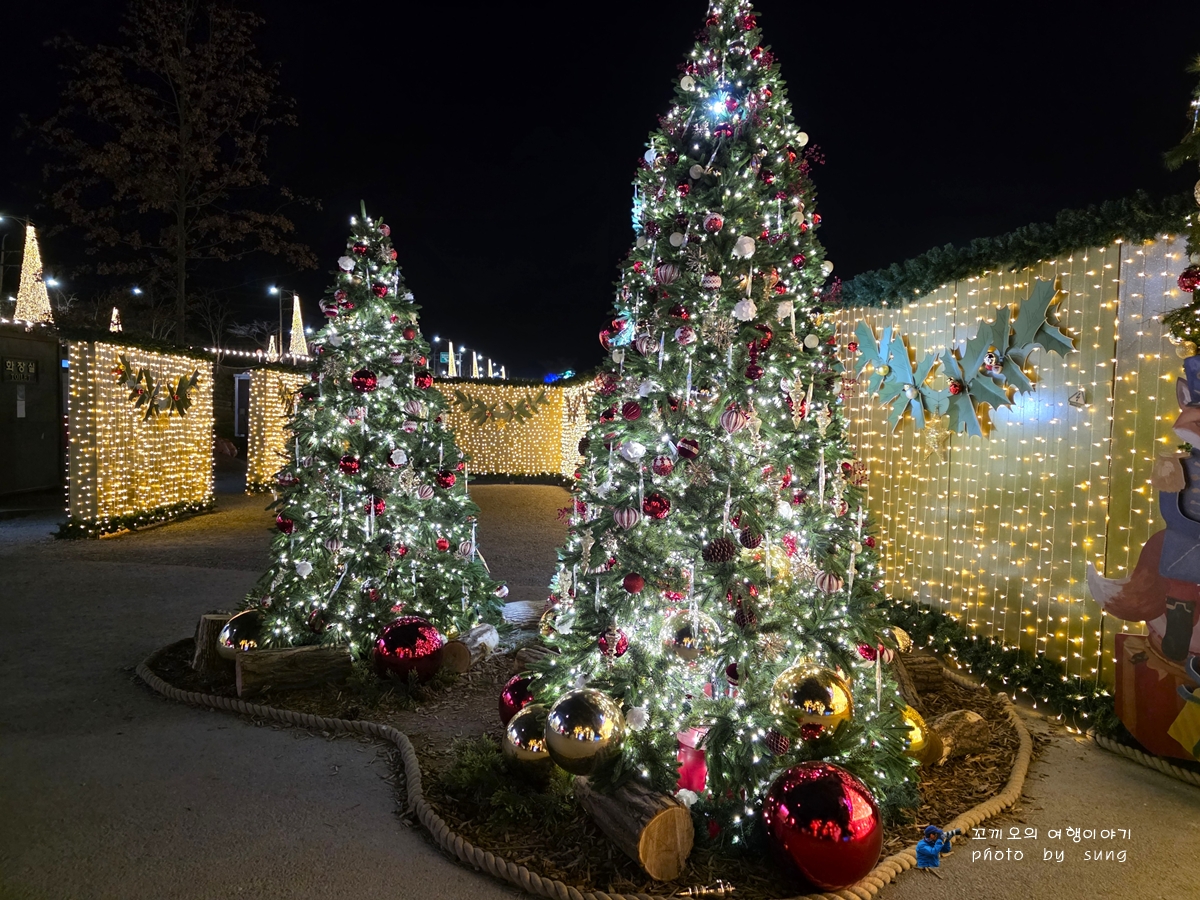 겨울 볼거리로 등장하는 ‘별빛 산타 레이크’ 는 송해공원에서 처음 선보인 겨울 경관조명 사업의 일환으로, 공원 일대는 다양한 크기와 형태의 조형물로 장식됐다. 특히 10m 대형 트리 1개와 8m 트리 3개를 비롯한 다양한 조형물들이 눈길을 끌며, 공원 입구에 배치된 산타 인형과 가로등 조형물은 송해공원의 특별한 매력으로 떠오르고 있다.