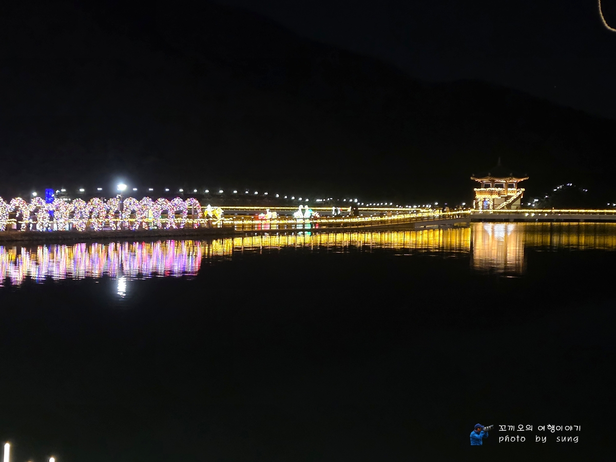 화려한 조명이 옥연지에 반영이 되면서