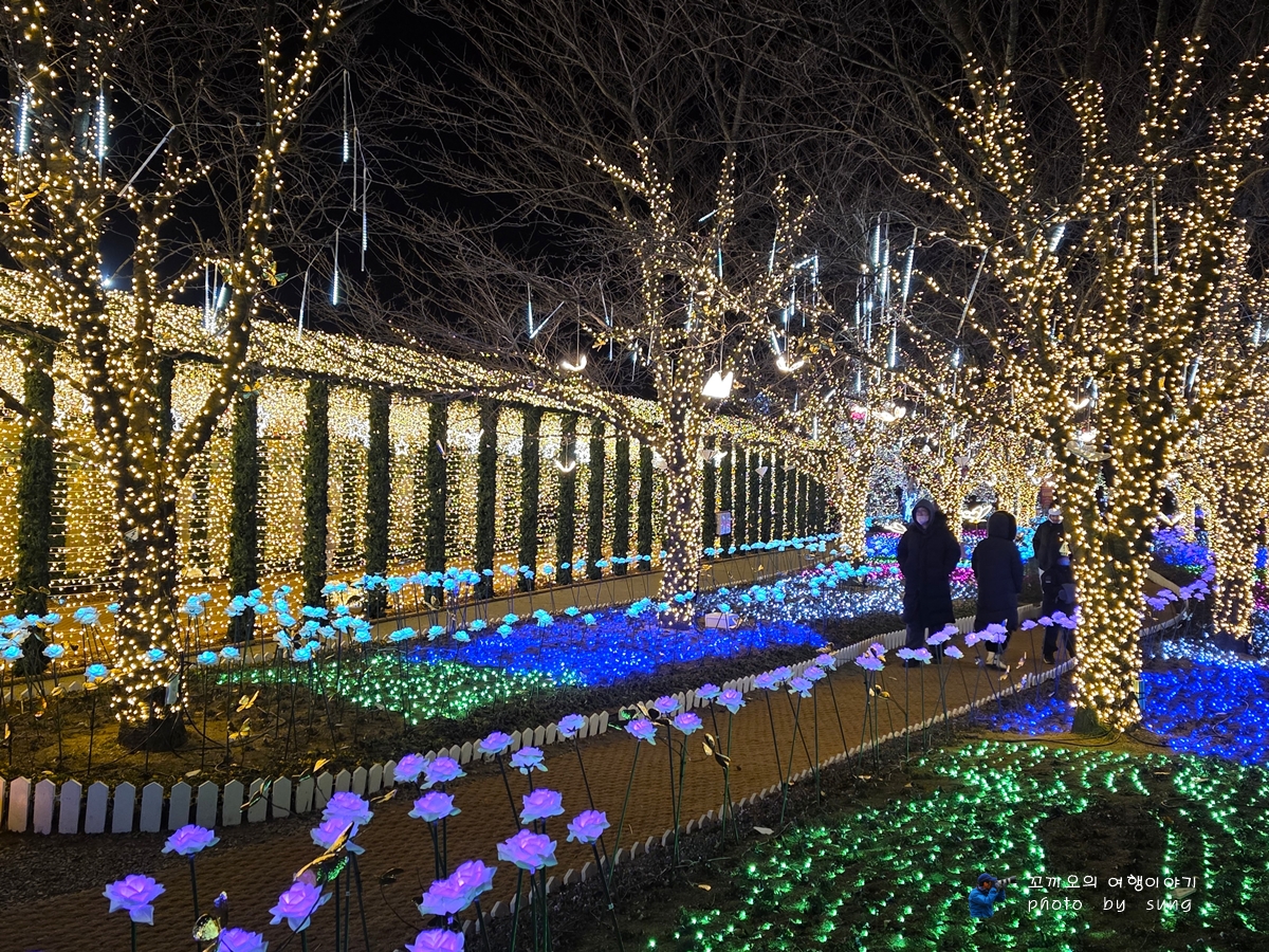 입구에서 들어가는 별빛 터널에는 조명이 화려하게 불밝히면서 아름다운 풍경이다.