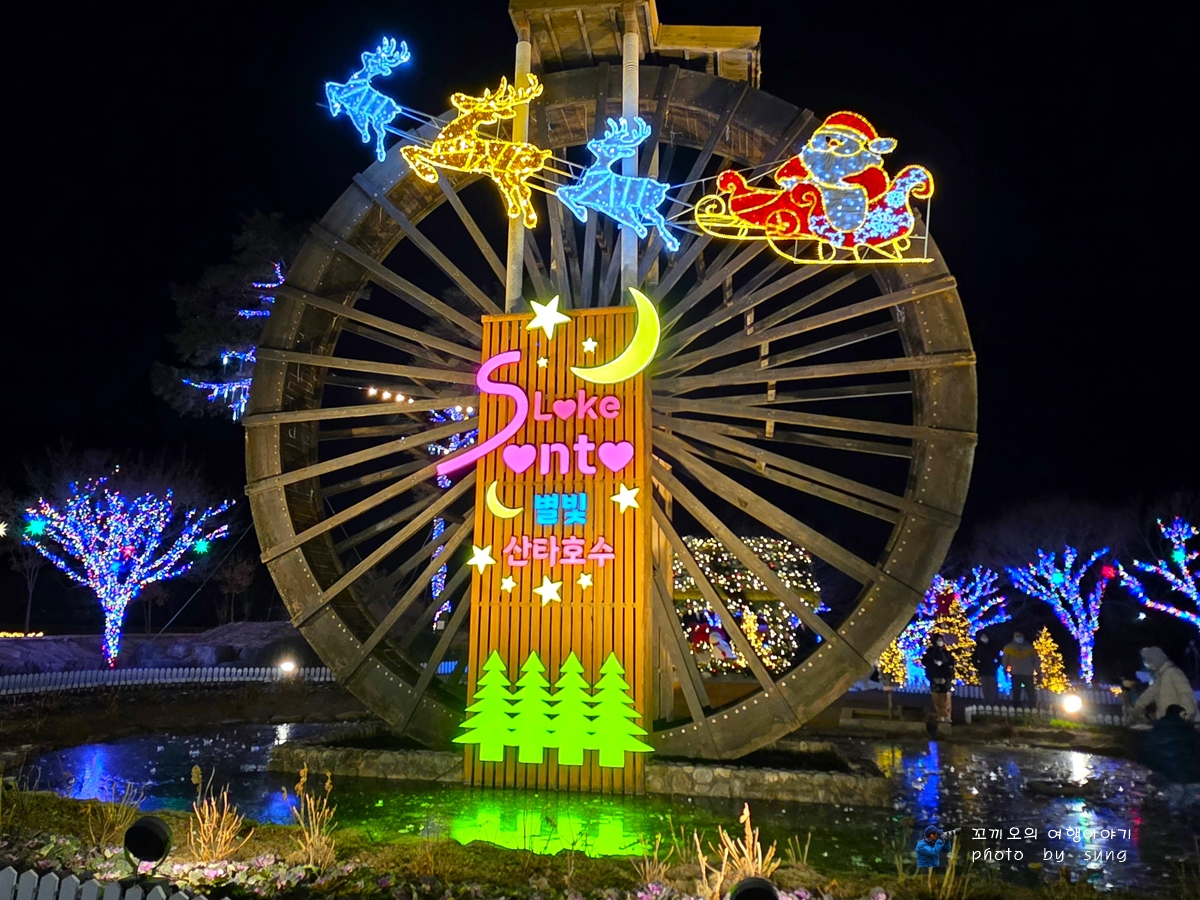 물레방아에 조명을 넣어서 더 아름답기도 하다.