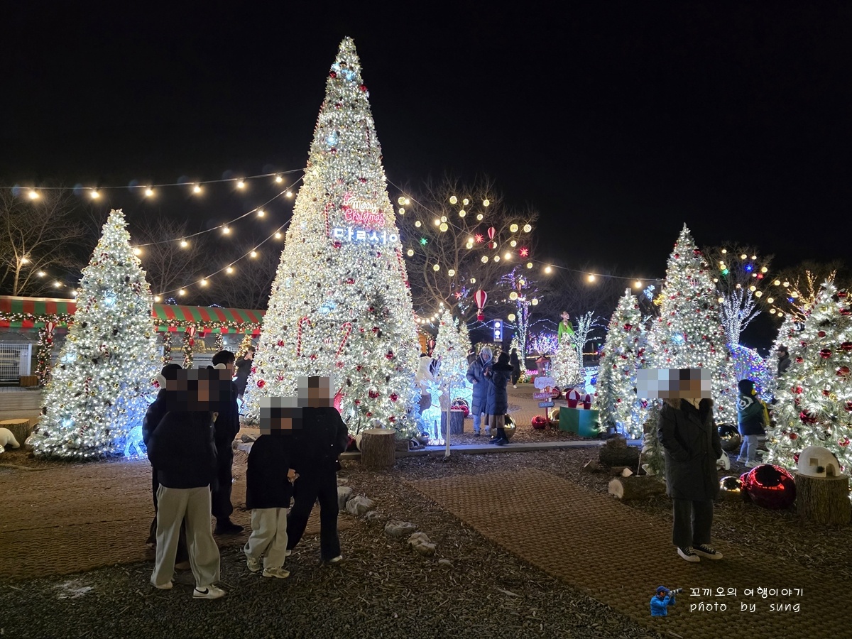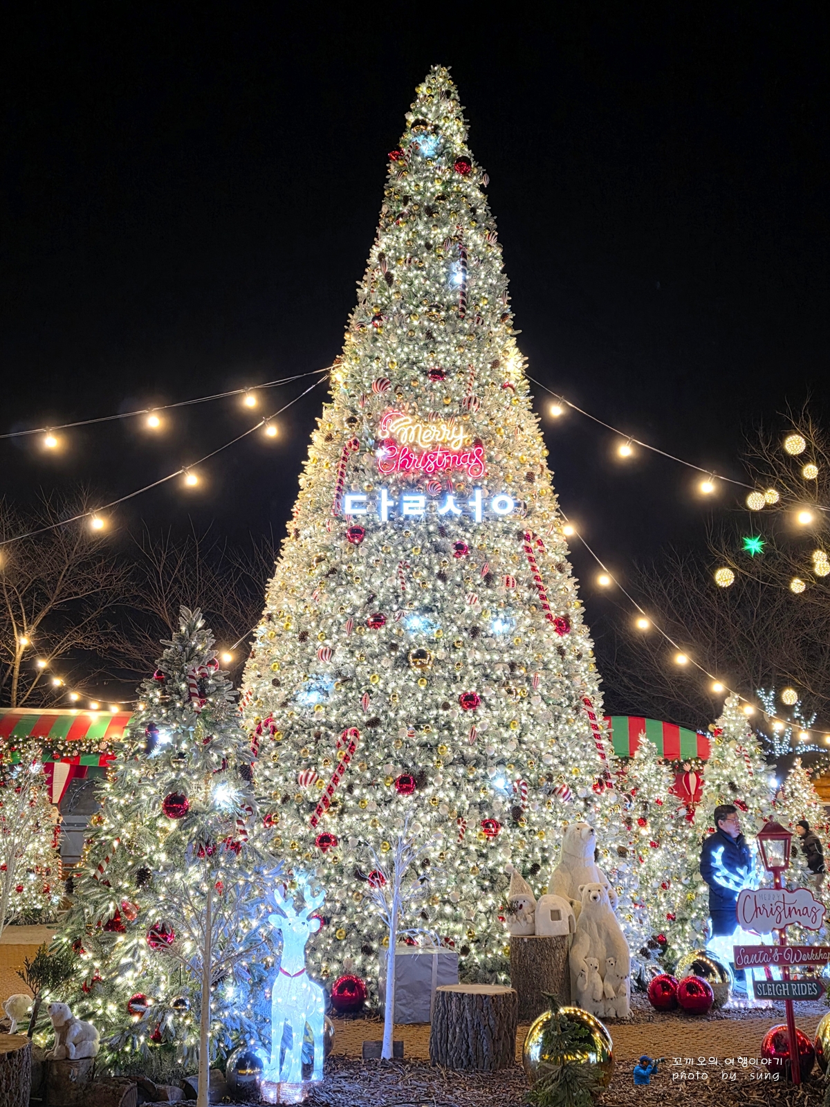 대형 크리스마스 트리에 화려한 불빛이 장관을 이룬다.