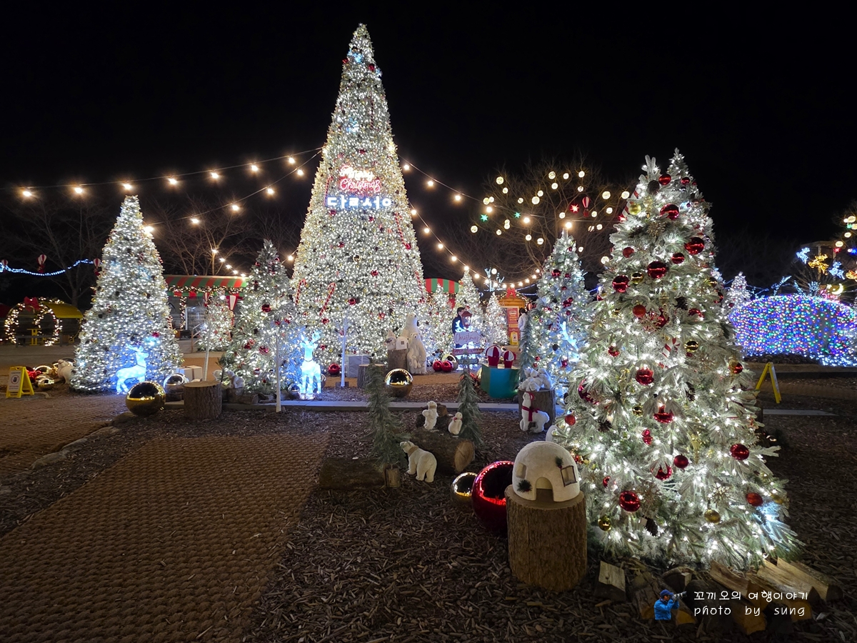 크리스마스 대형 트리에도 조명이 들어오면서 화려한 불빛이 장관을 이룬다.