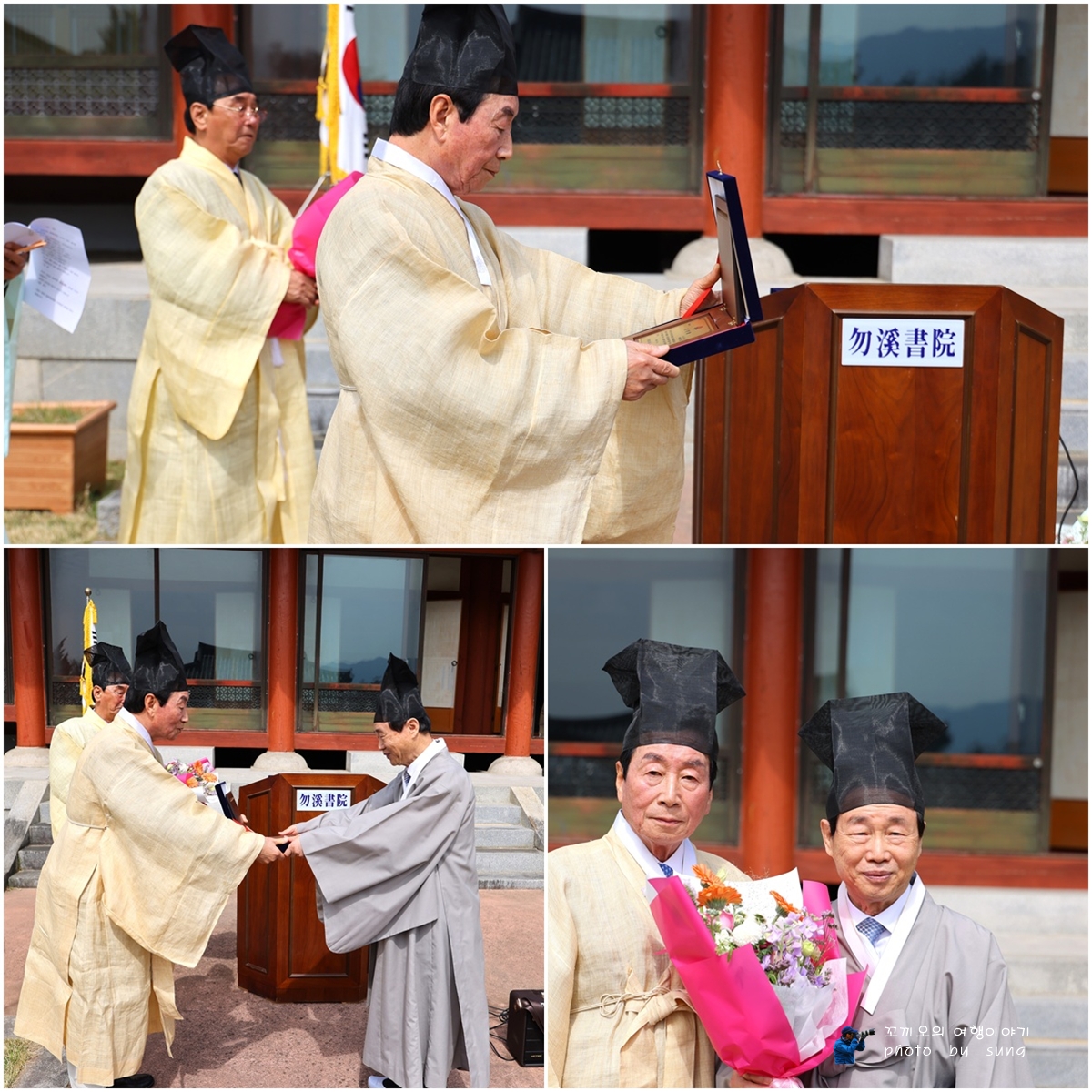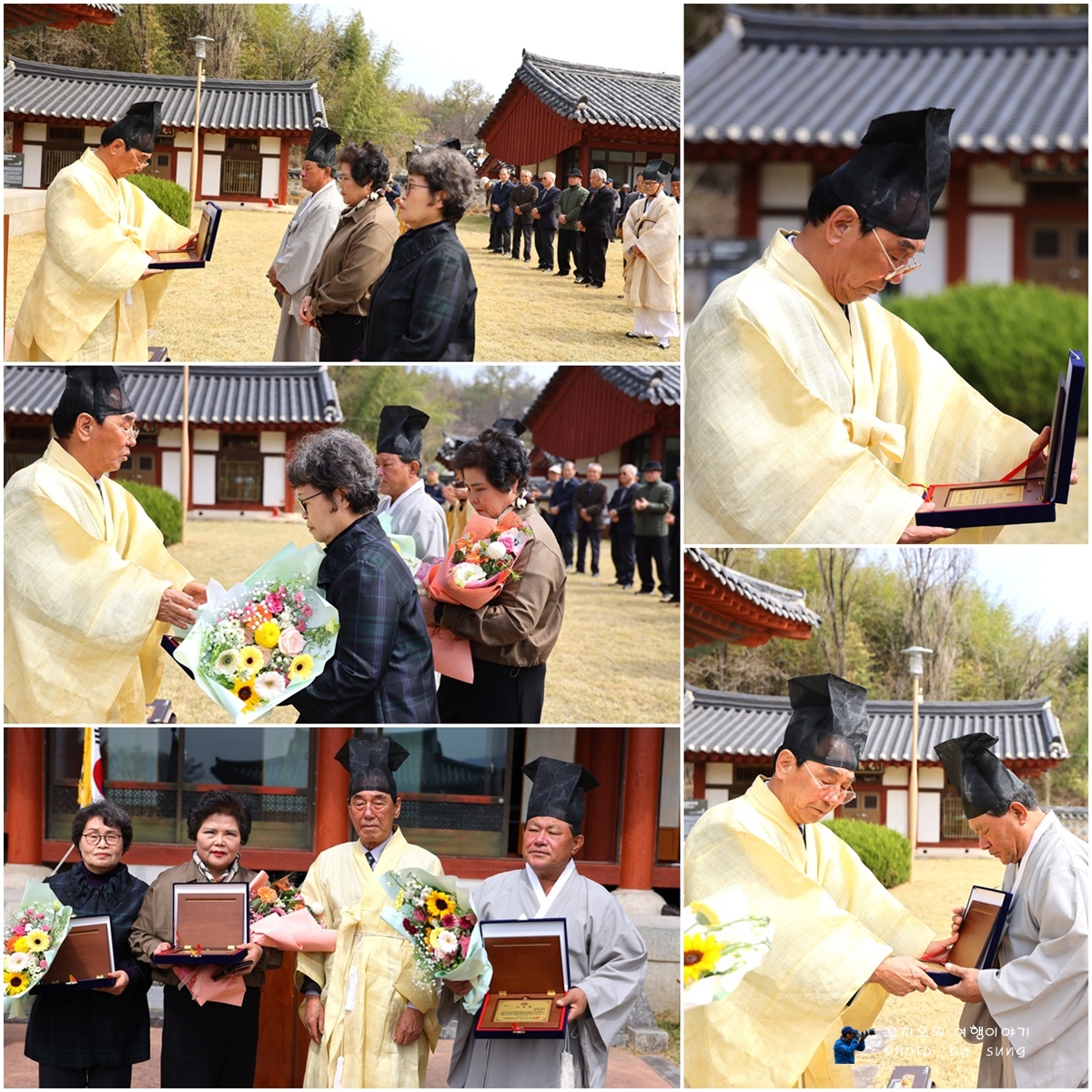 26년도 물계서원 춘향대제 봉행의 본행사 진행에 앞서 성위경 물계서원 이사장님이 참석하신 내빈 소개와 인사 말씀에 이어서 성지경 물계서원 원장님의 축사를 마치고 헌신적으로 봉사를 해오신 분들에게 감사패 전달식을 하고 현도문을 통과하여 숭덕사로 자리를 옮겨서 춘향대제봉행에 집례(성달수 종원님) 순서에 따라서 초헌관은 문병환님(농협중앙회 경남본부장님 역임), 아헌관은 김정국님(창녕여고 교장선생님 역임), 종헌관은 배달수님(전국 최고의 농민단체인 경화회장님) , 서 분헌관은 성낙균 종원님, 동 분헌관은 성수현 종원님 대축은 성영경 종원님이 하시면서 전국에서 참석하신 많은 종원 여러분들과 함께 26년 춘향대제 봉행 행사가 성황리에 이루어졌다.