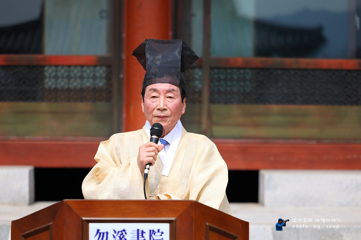 성지경 물계서원 원장님이 축사를 하시는 모습이다.