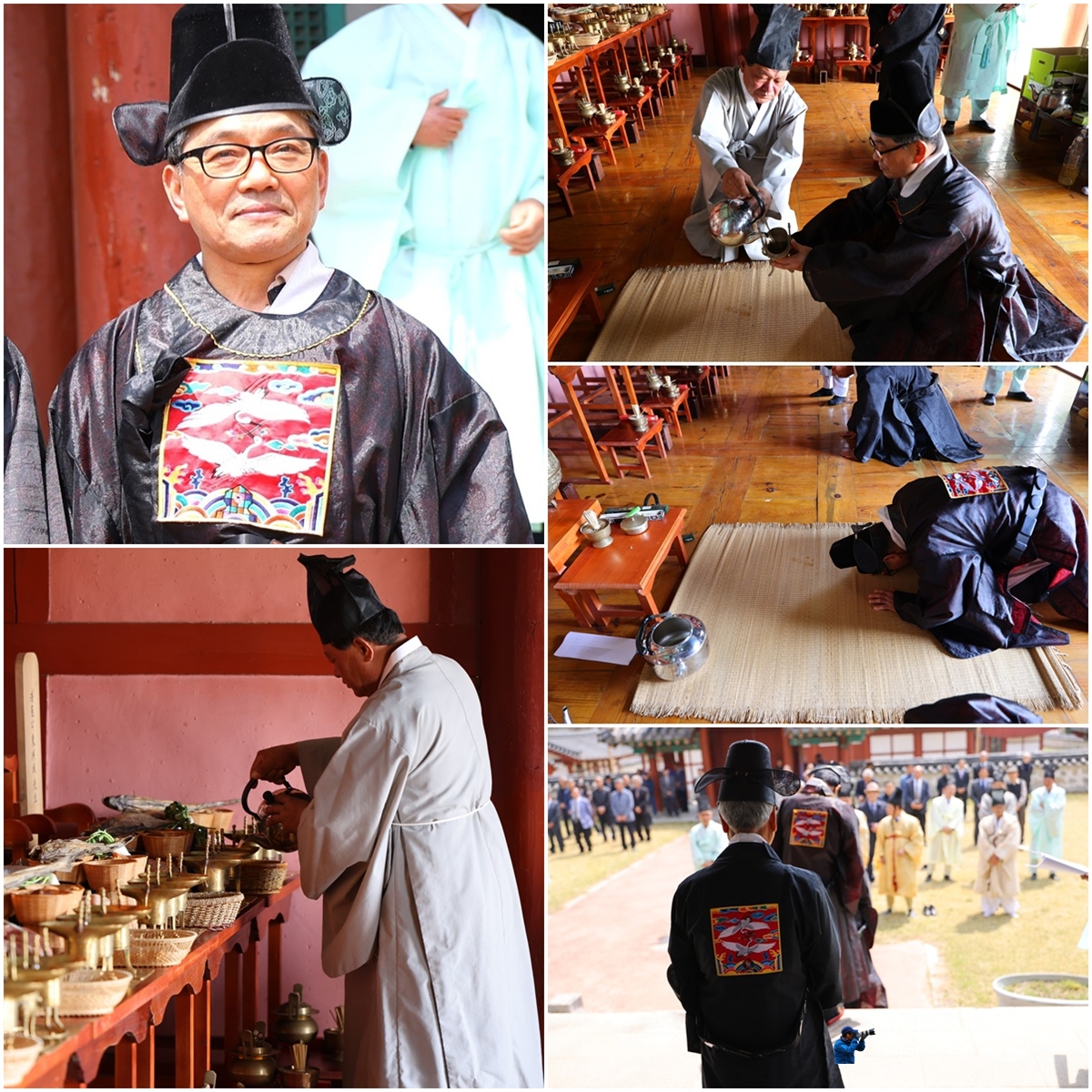 좌측에서부터 초헌관 문병환님, 종헌관 김정국님, 아헌관 배달수님, 서분헌관 성낙균 종원님, 동분헌관 성수현 종원님의 순이다.