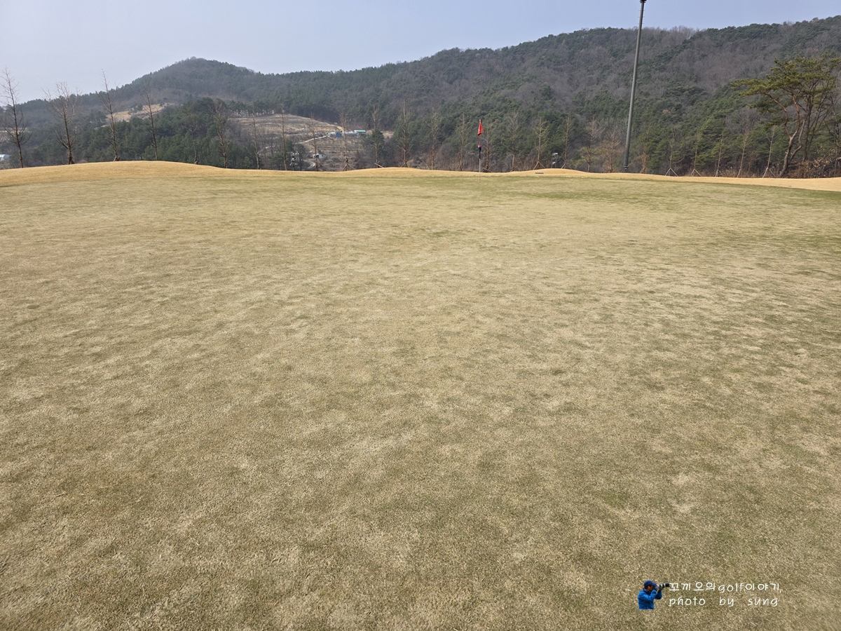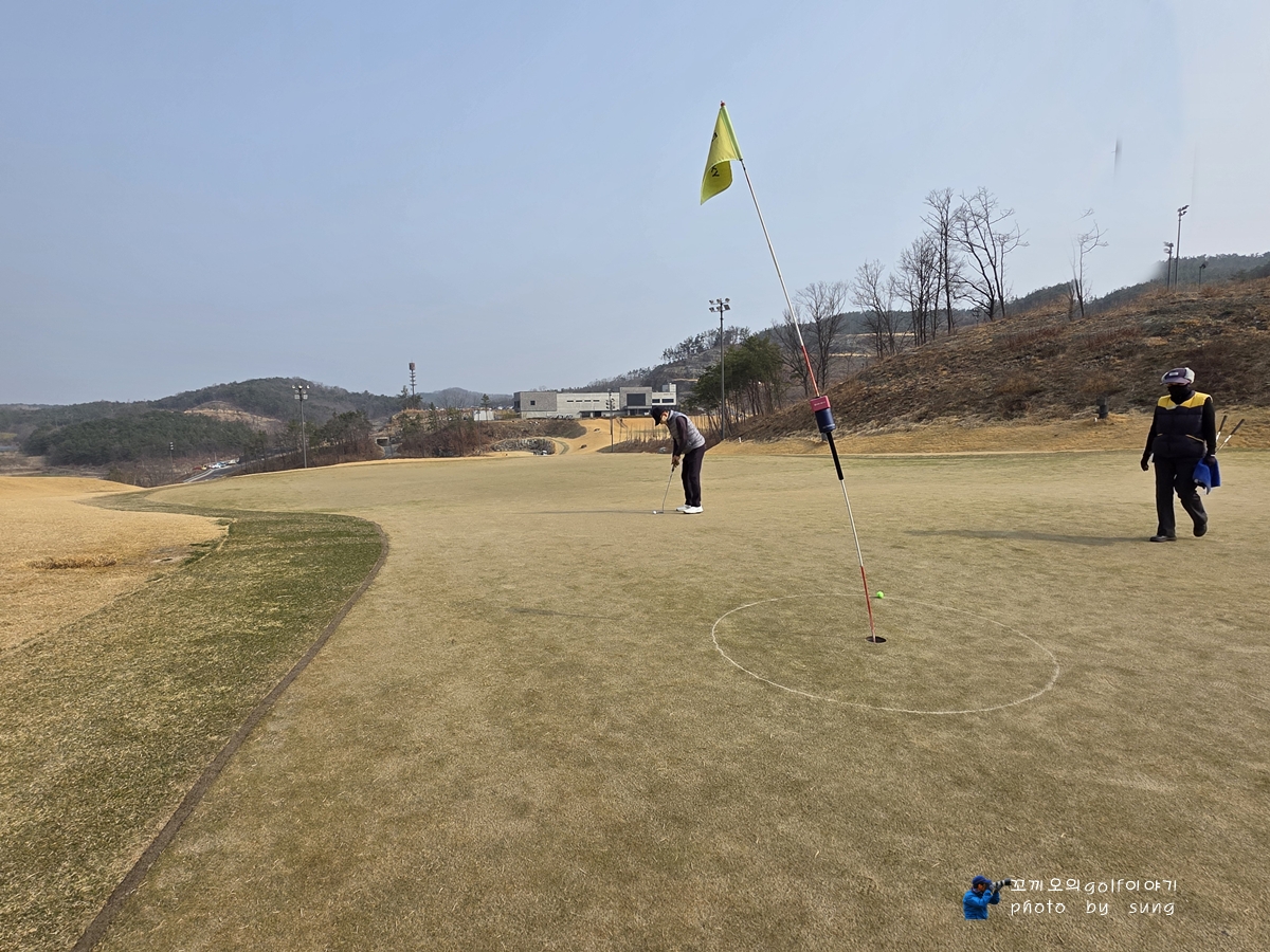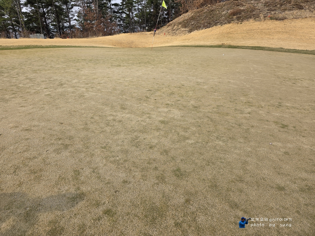 그린이 예전에는 안 그랬는데 요즘은 그린의 잔디가 다 말라죽어서 완전하게 맨땅이 되어버렸으니 원 참 ㅎㅎ
