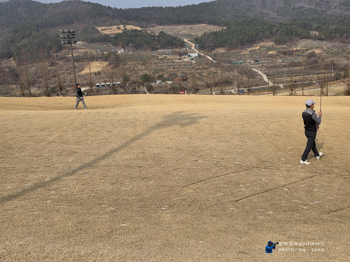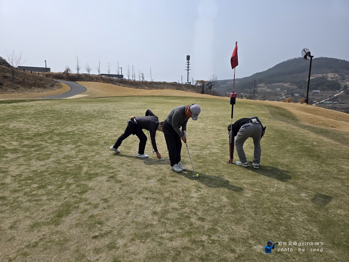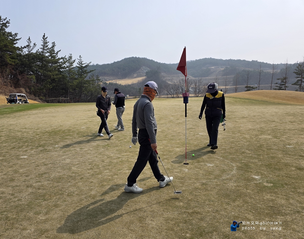 그린이 예전에는 안 그랬는데 요즘은 그린의 잔디가 다 말라죽어서 완전하게 맨땅이 되어버렸으니 원 참 ㅎㅎ
