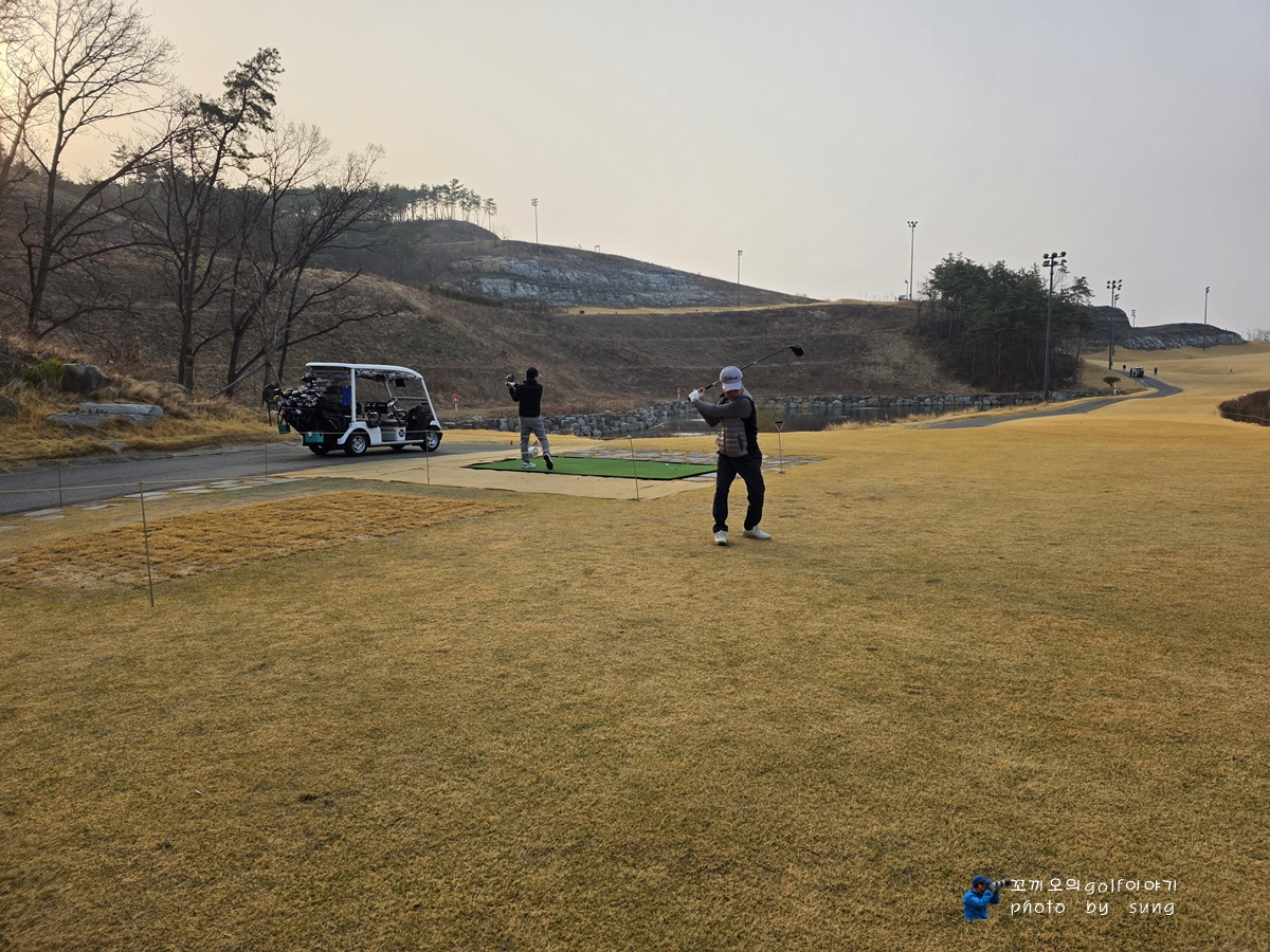 첫 홀에서 몸을 풀면서 스윙 점검을 해보는 모습이다. ㅎㅎ