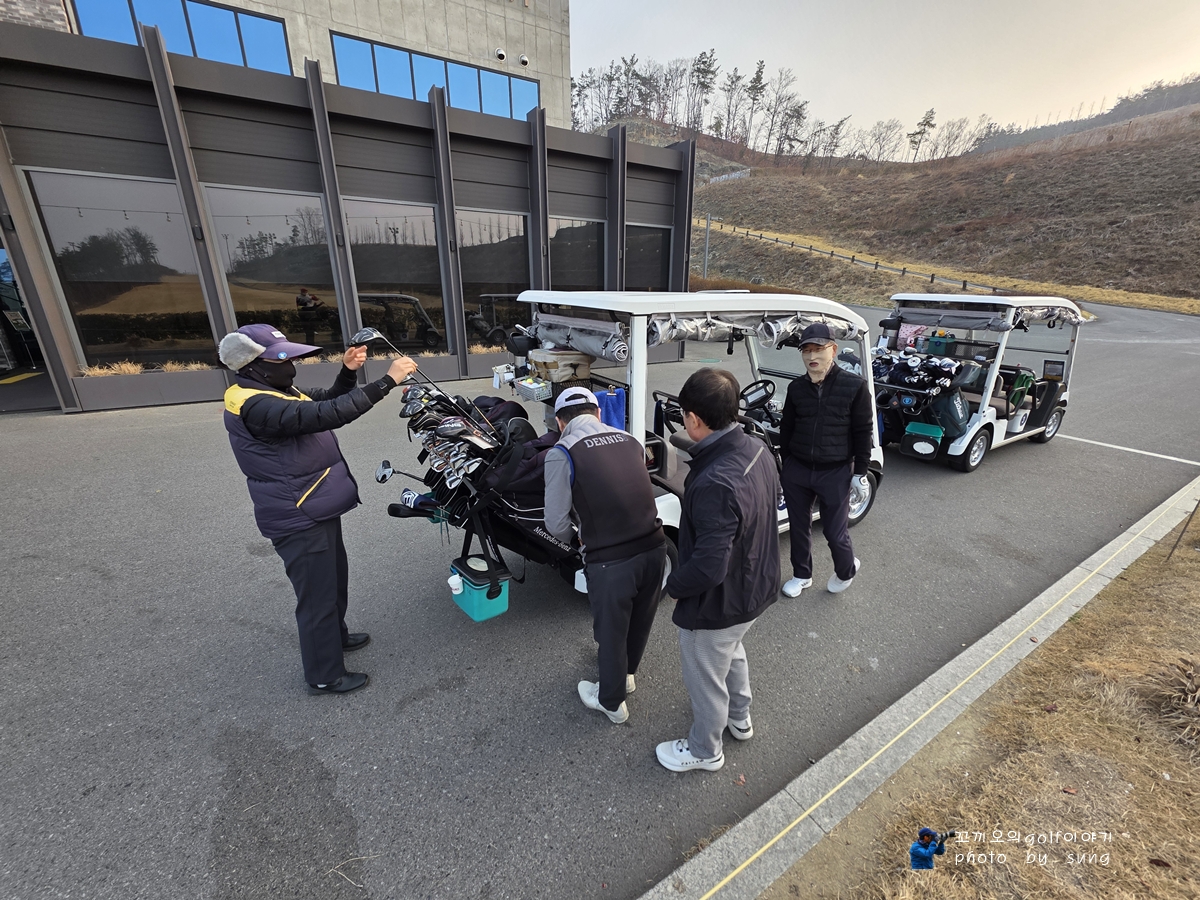 라운딩을 즐기기 전에 카트기를 배정받아서 준비를 하는 모습이다.