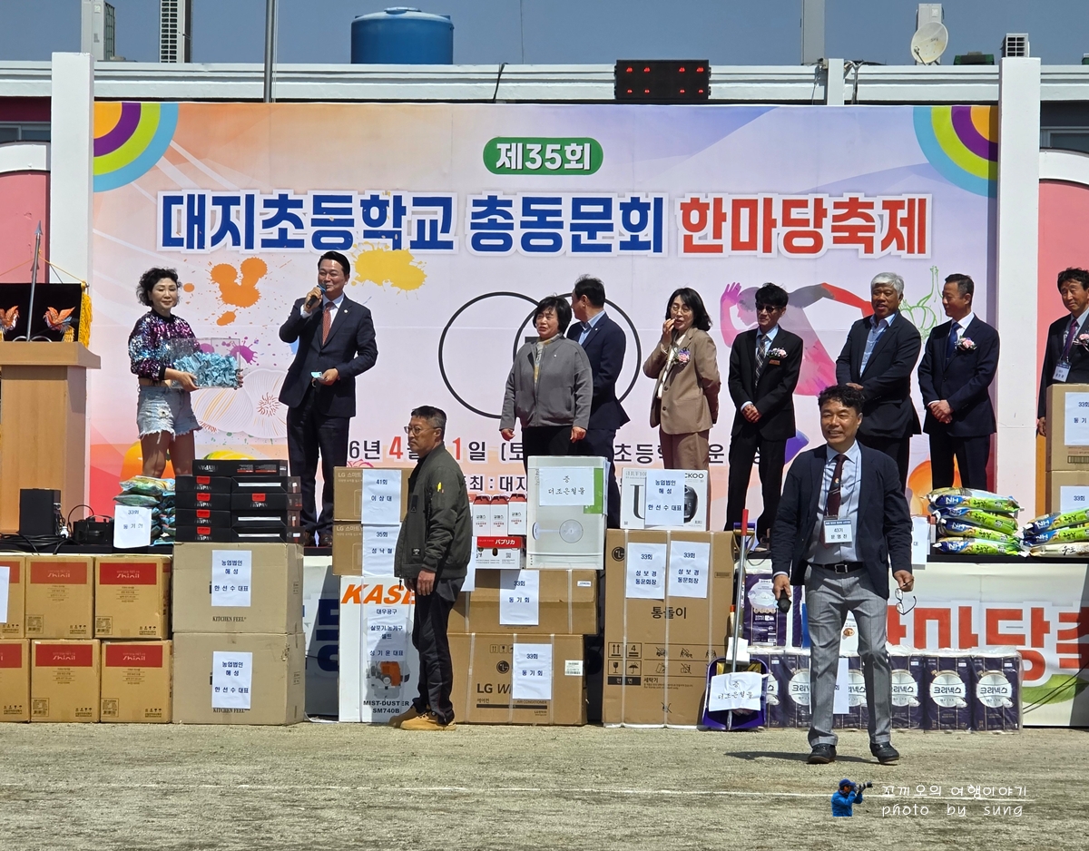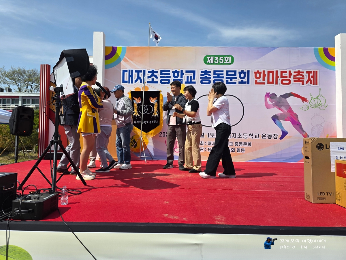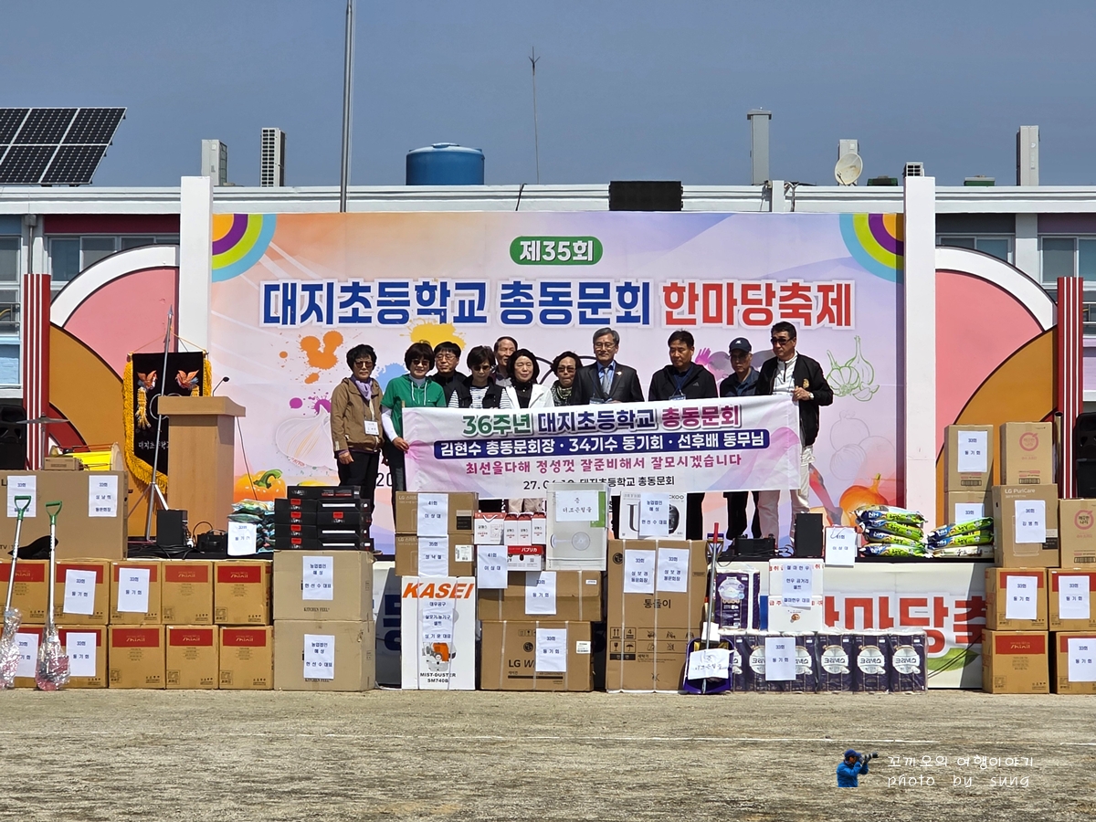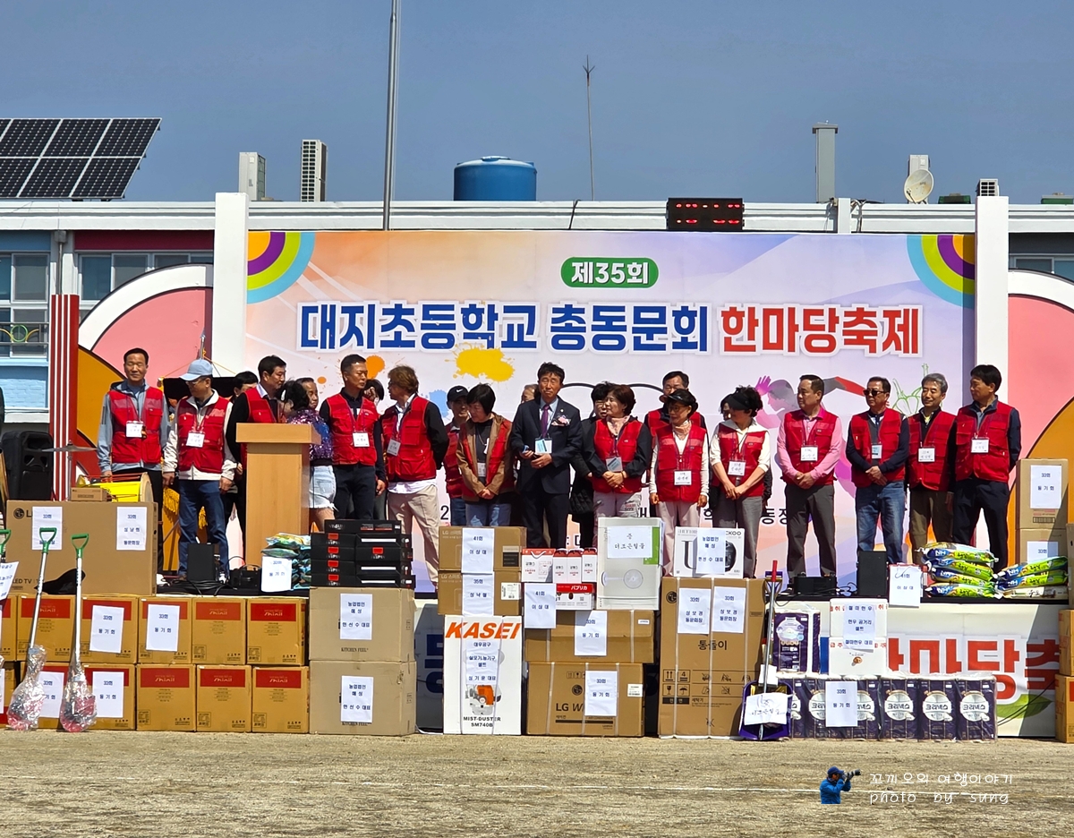 대지초등학교 교정에서 33회 기수가 주관하는 제35회 총동문회 한마음 축제 행사가 개최되었다. 나의 살던 고향은 시골의 꽃 피고 새 우는 산골에서 성장하여 꿈 많은 어린 시절을 이곳 대지초등학교에서 6년간을 다니면서 1972년도에 졸업하고 올해로 어언 54년이라는 세월이 흘러갔다, 그리고 올해 35회로 맞이하는 총동문회 한마음 축제 행사를 위하여 각 기수 선후배 동문 여러분들이 많이 참석하여 성황리에 개최가 되었으며 한마음 축제 행사를 하면서 선 후배 여러분들과 교정에서 하나 된 마음으로 꿈 많은 어린 시절의 아름다운 추억을 더듬어보면서 오랜만에 만나는 동기생들과 즐겁고 행복한 축제 행사를 하였다.